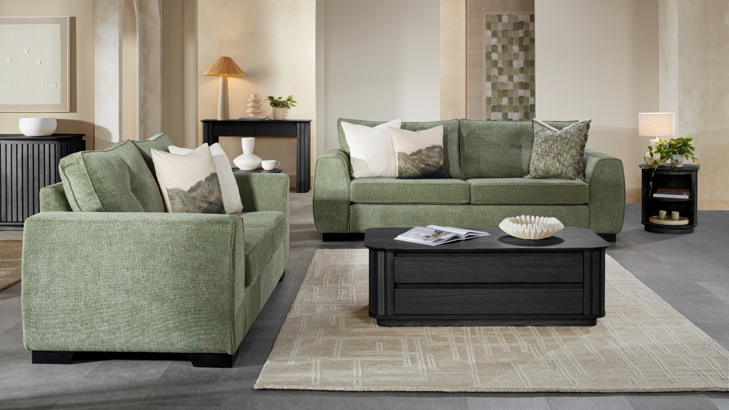 *Please note: The price stated is for one Botany 2 Piece Fabric Lounge Suite only. Accessories and other products are not included.