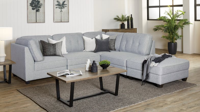Versatile and comfortable, the Corro 4 Seater Fabric Corner Lounge Suite lets you create your dream space just the way you like it. Boasting fully modular pieces, this furniture set can be positioned to suit various home layouts and interiors. It also comes with a beautiful ottoman that you can use as a chaise extension or position as a separate seating piece. Plus, this lounge suite is easy to style up using your favourite cushions and blankets for a more personal touch.