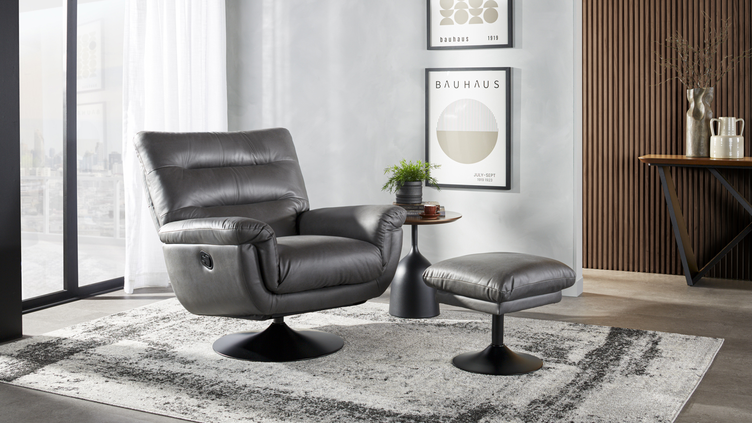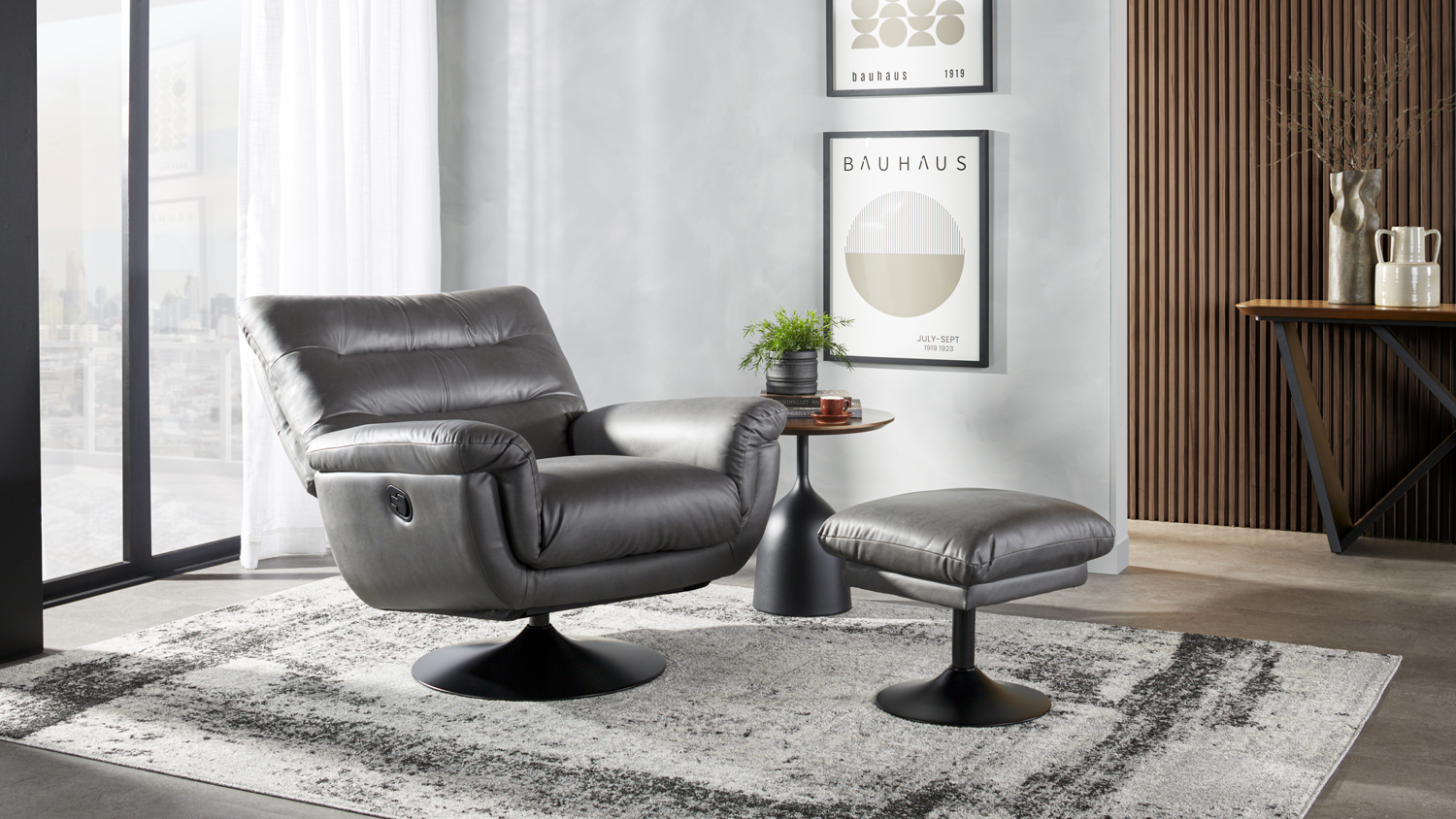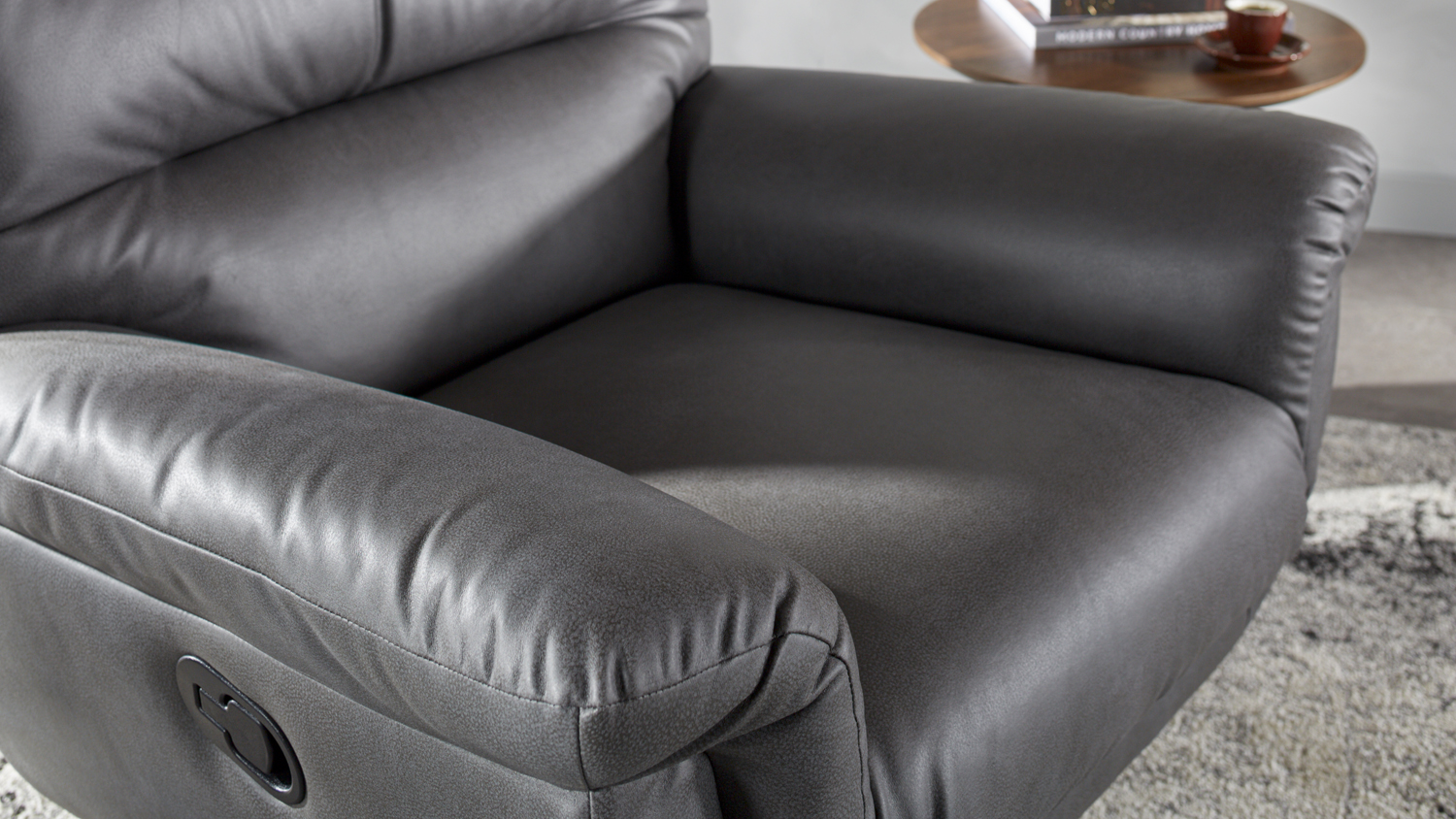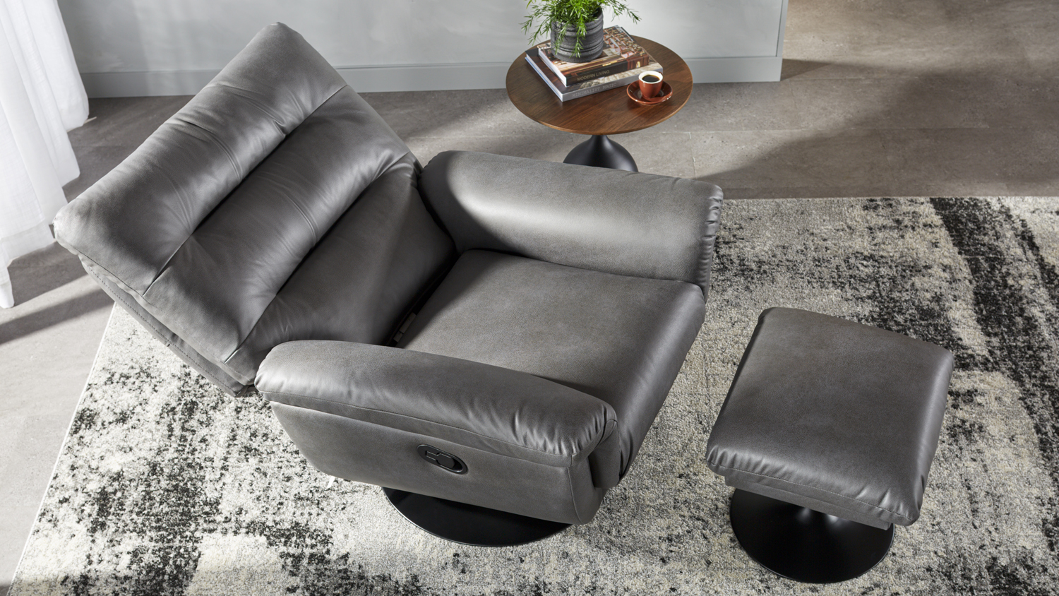 Atessa Fabric Recliner and Footstool - Charcoal