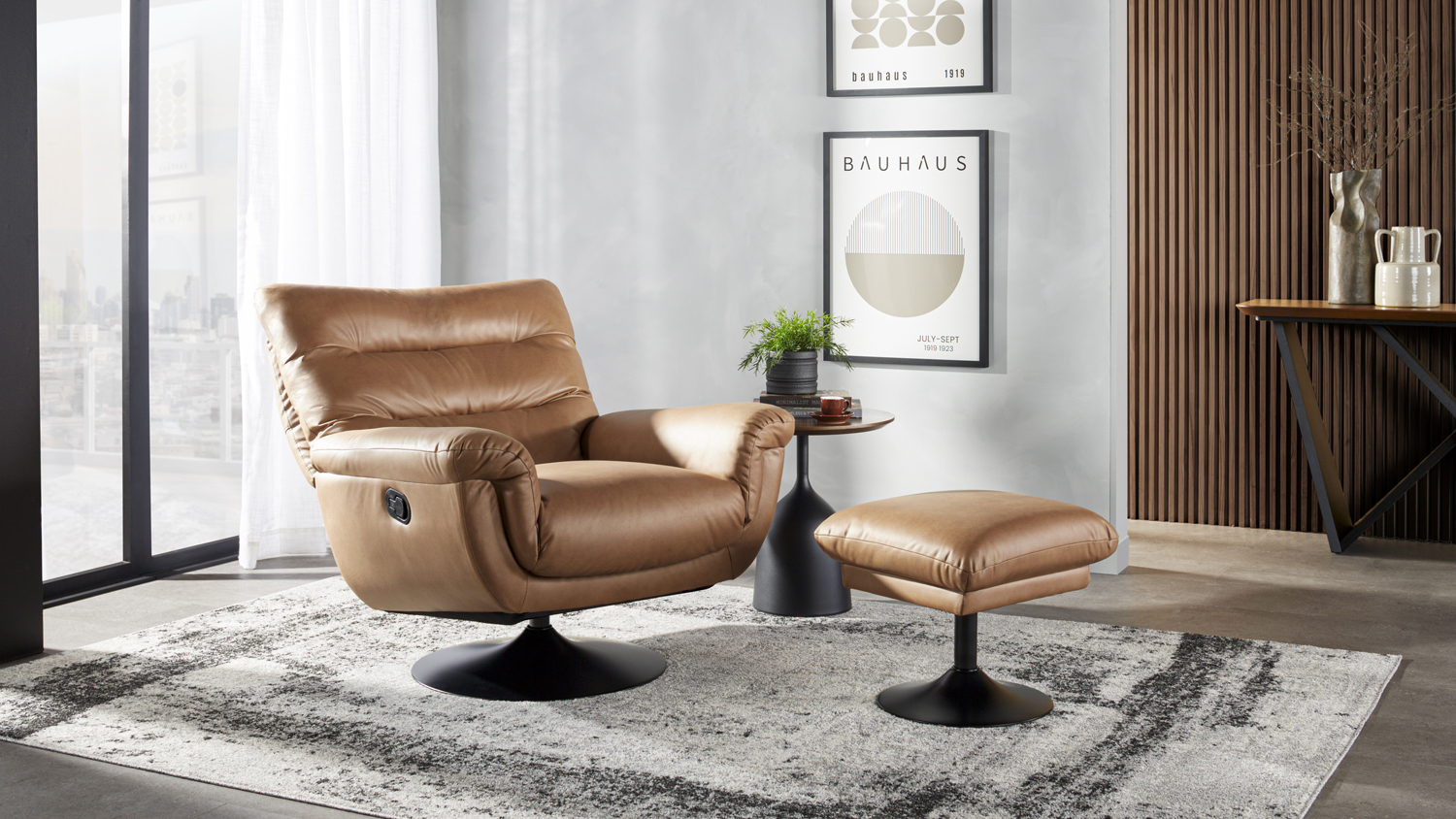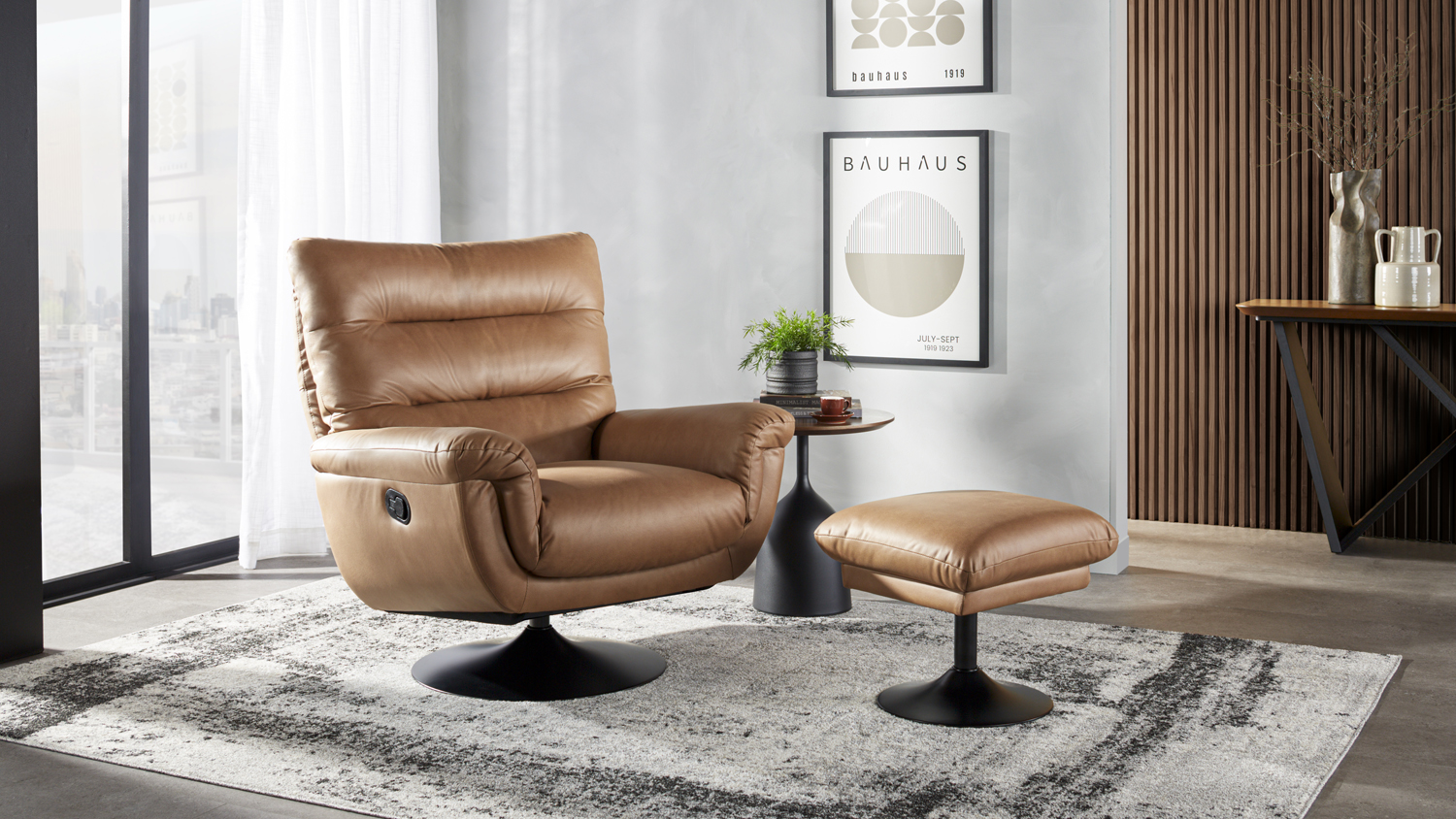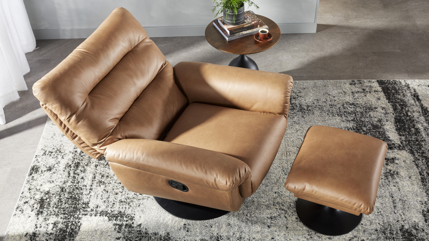 Atessa Fabric Recliner and Footstool - Saddle