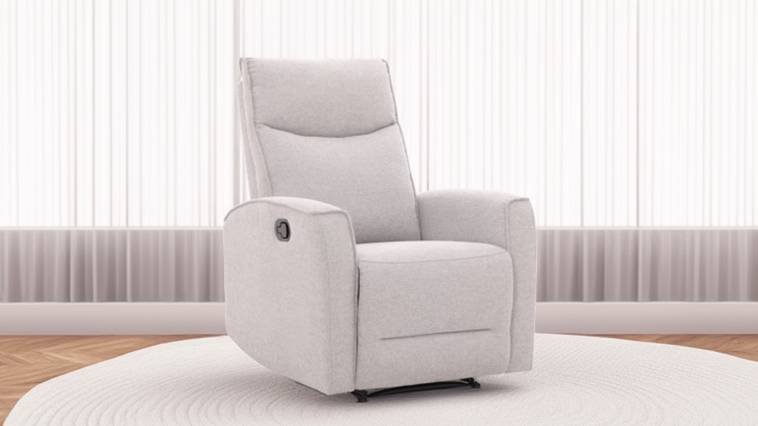 Sink into pure serenity with the Chatham Fabric Recliner Chair. Designed with dual-layered high-density foam and a smooth manual recline, this furniture is perfect for reading, watching TV, or simply unwinding. Plus, its light grey fabric and solid wood frame add a modern touch to any living space.