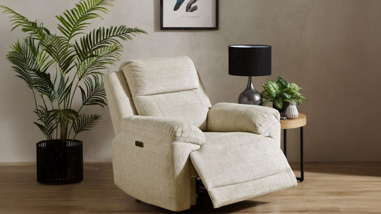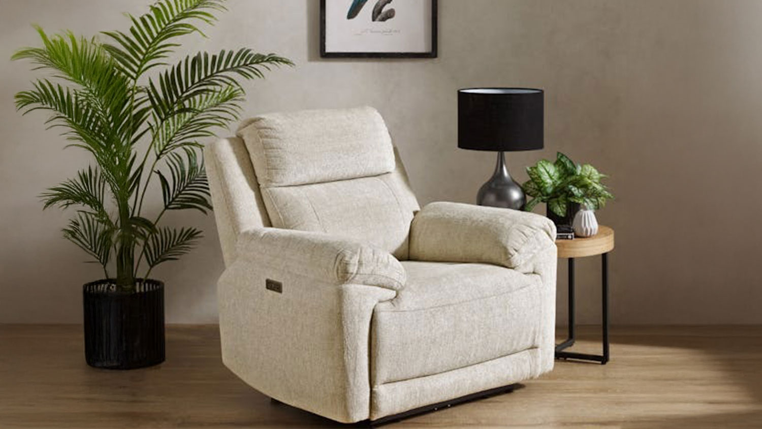 Relax your way with the Eathon Fabric Electric Recliner Chair. This seat features powered reclining, adjustable footrest, and neck support, allowing you to sit back in your preferred position. With a built-in USB Type-C port, you can keep your devices charged while you lounge. Its pocket and zig-zag spring system also ensures lasting comfort, while the smooth fabric upholstery and foam-filled cushions add a touch of everyday luxury.