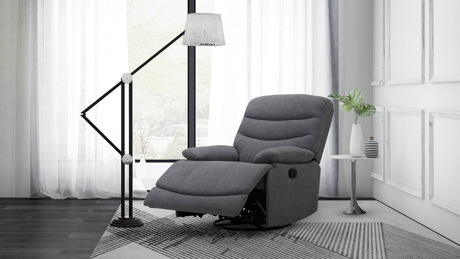 Please note: Price stated is for one Lyon Fabric Swivel and Glider Manual Recliner Chair only. Other accessories are not included.