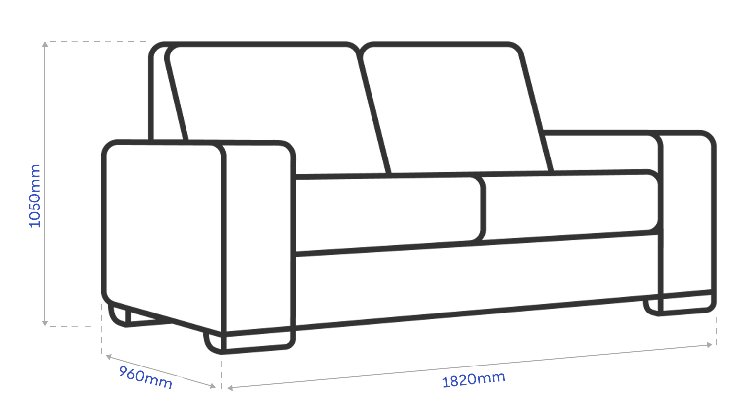 Dimensions: L 1820 x W 960 x H 1050 mm