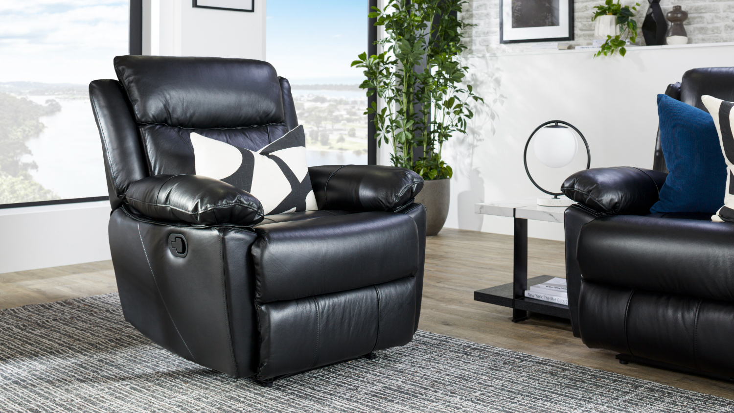 *Please note: This item is a 3 Piece Leather Recliner Lounge Suite, which includes a 1 x 3-Seater Sofa and a 2 x 1-Seater Recliner Chair. Accessories and other items shown are not included.