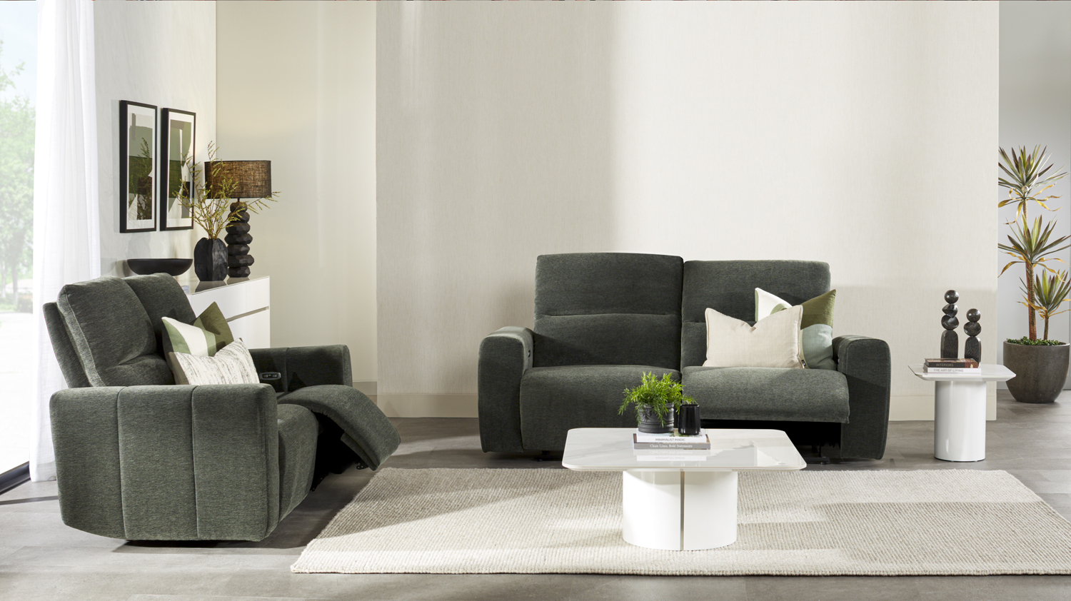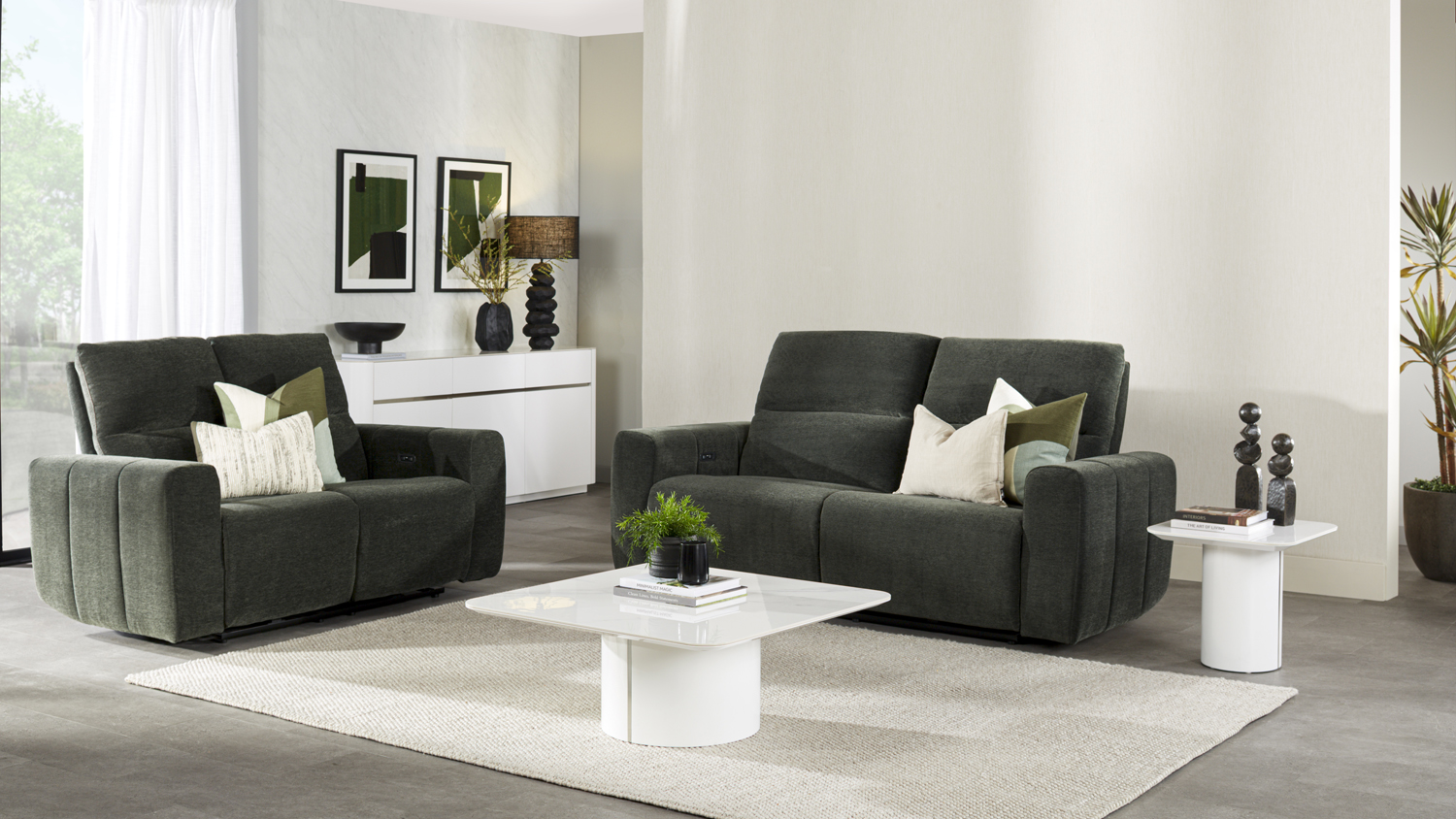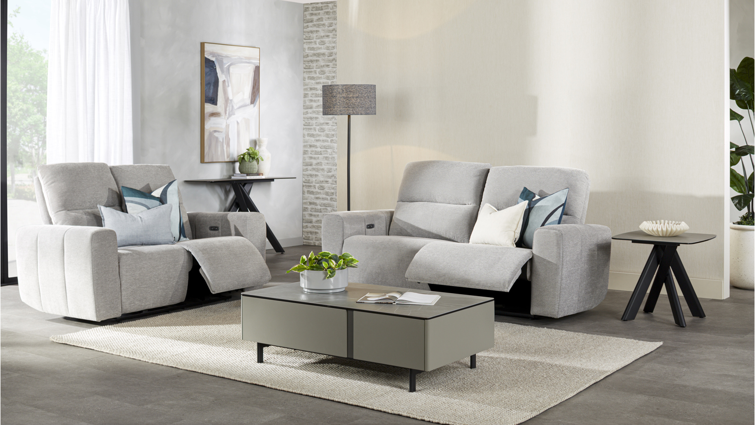 *Please note: Price stated is for one Waimea 2 Piece Fabric Electric Recliner Lounge Suite only. Accessories and other items shown are not included.