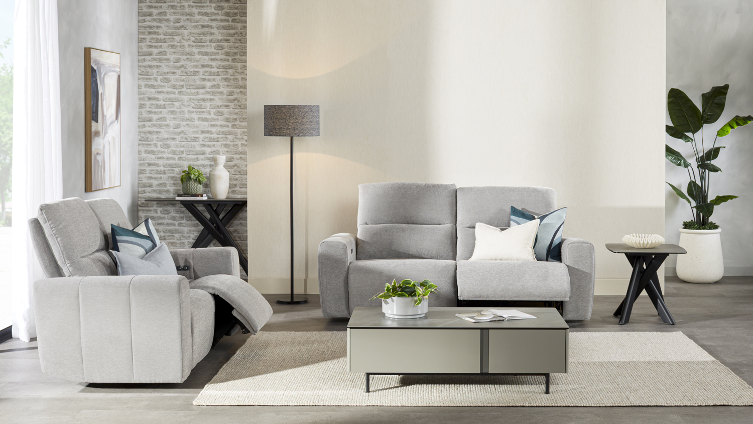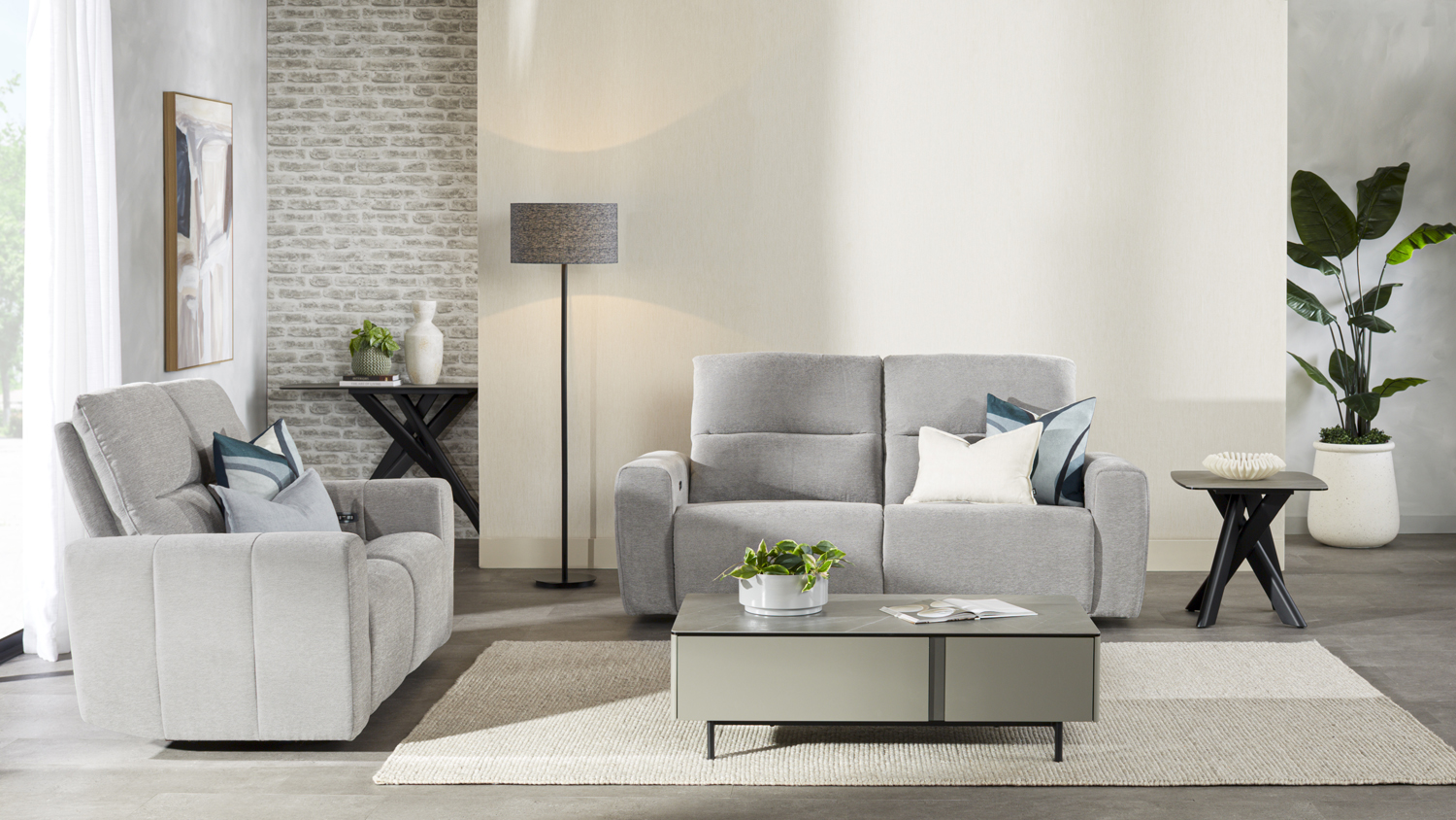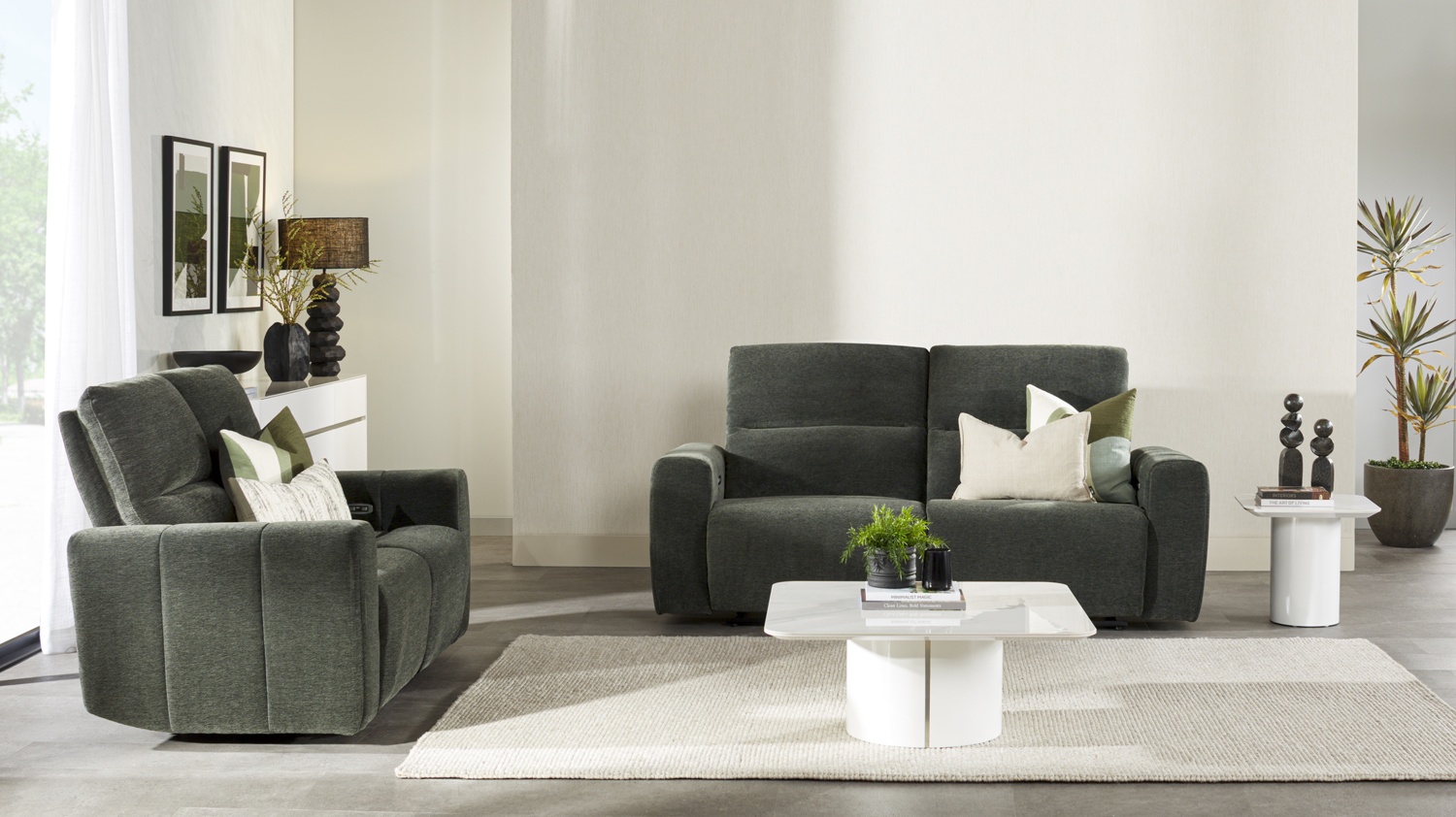 *Please note: Price stated is for one Waimea 2 Piece Fabric Electric Recliner Lounge Suite only. Accessories and other items shown are not included.