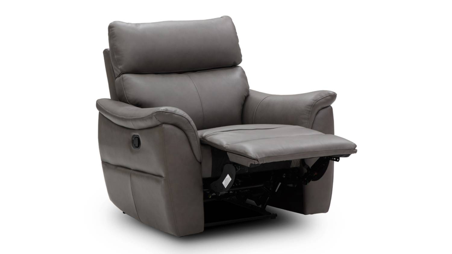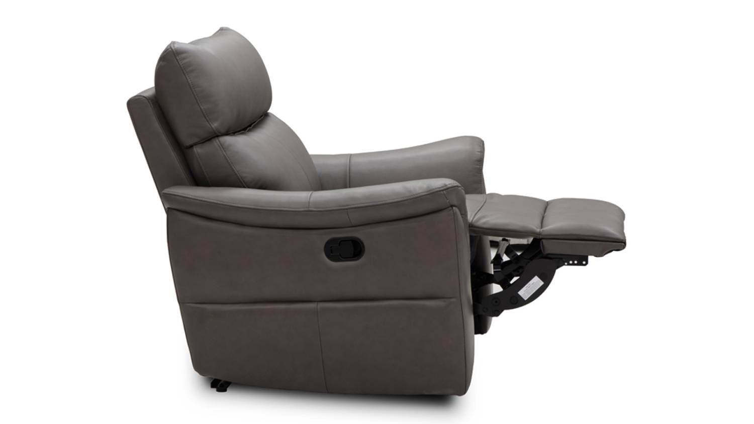 Sit back and relax with the Aspen Leather Recliner Chair, designed for everyday comfort and effortless lounging. Featuring a smooth manual recliner with a grounded footrest, durable grey leather upholstery, and a solid wood frame, this furniture offers reliable support and style. Advanced cushioning with pocket springs also ensures lasting comfort, while the removable backrest makes setup simple.