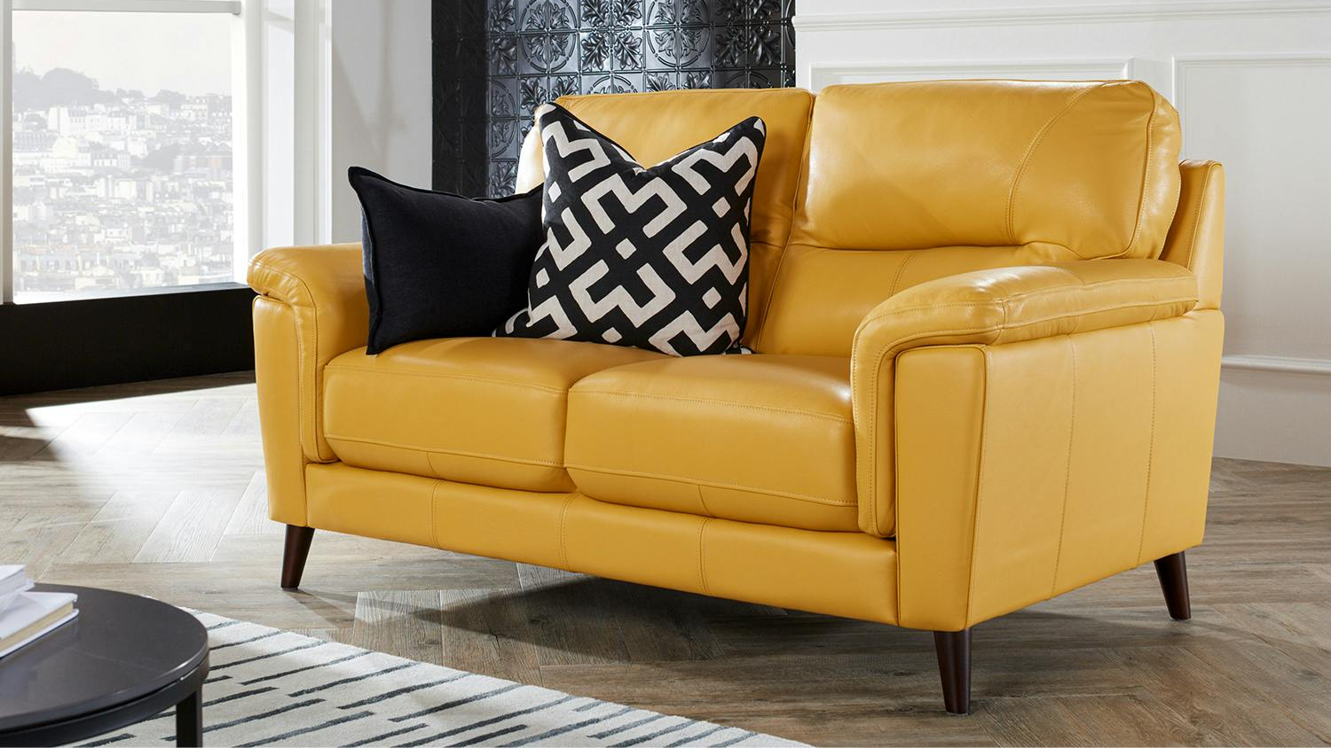 Experience the supreme comfort and style offered by the Braxton 2 Seater Leather Sofa! A wonderful centrepiece in your living space, this furniture boasts a yellow leather design that adds a touch of elegance to the room. It is also constructed with solid wood material to ensure its durability.