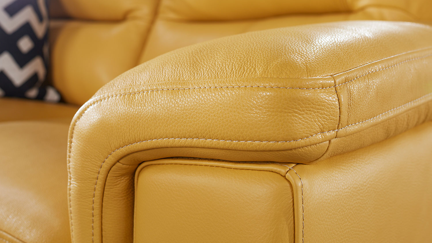 Experience the supreme comfort and style offered by the Braxton 3 Seater Leather Sofa! A wonderful centrepiece in your living space, this furniture boasts a yellow leather design that adds a touch of elegance to the room. It is also constructed with solid wood material to ensure its durability.