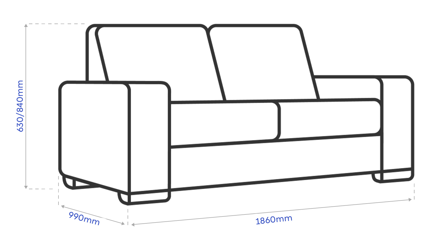 | Chair Dimensions | 2-Seater: 1860 x 990 x 630/840H (WxDxH) |