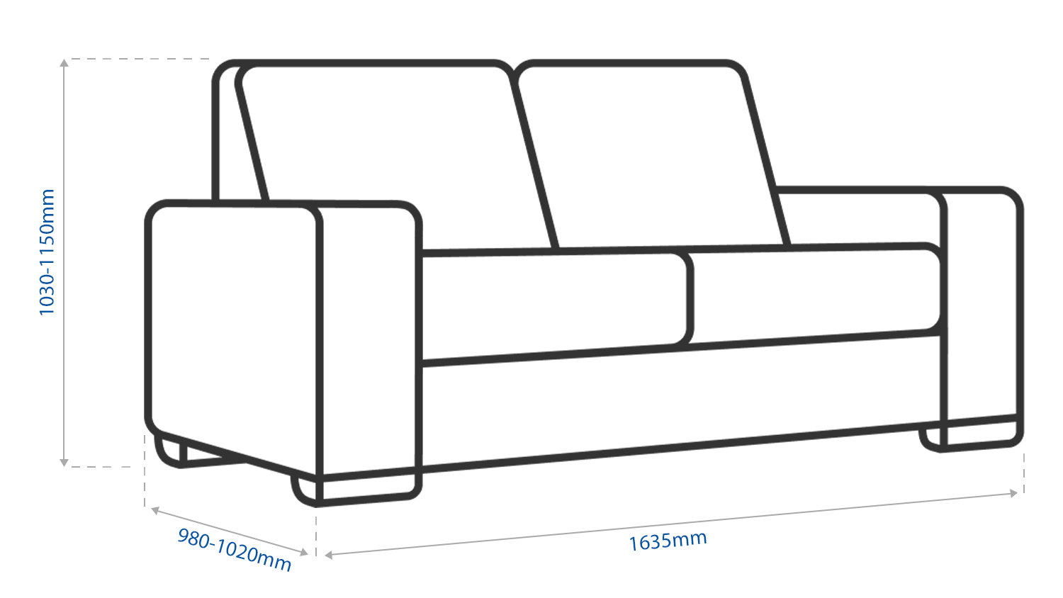 | Chair Dimensions | 1635 x 980-1020 x 1030-1150 mm (WxDxH) |