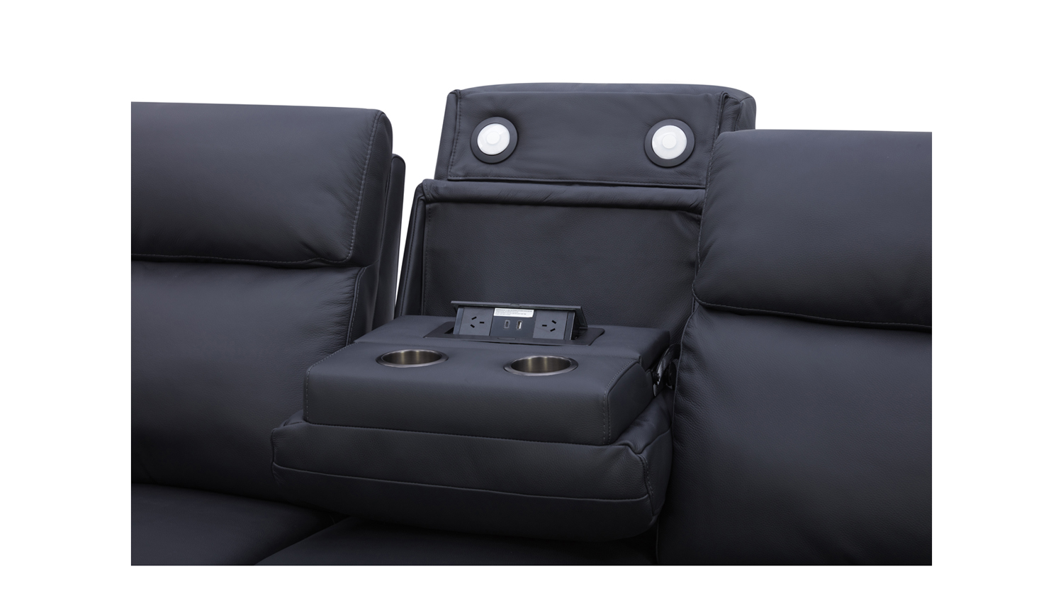| Sofa Details | Power Headrest, Drop down table with USB, Reading lights, Metal cupholder |