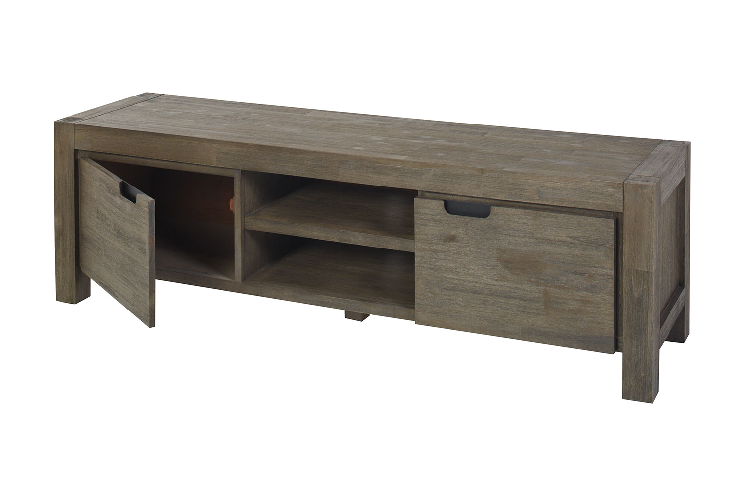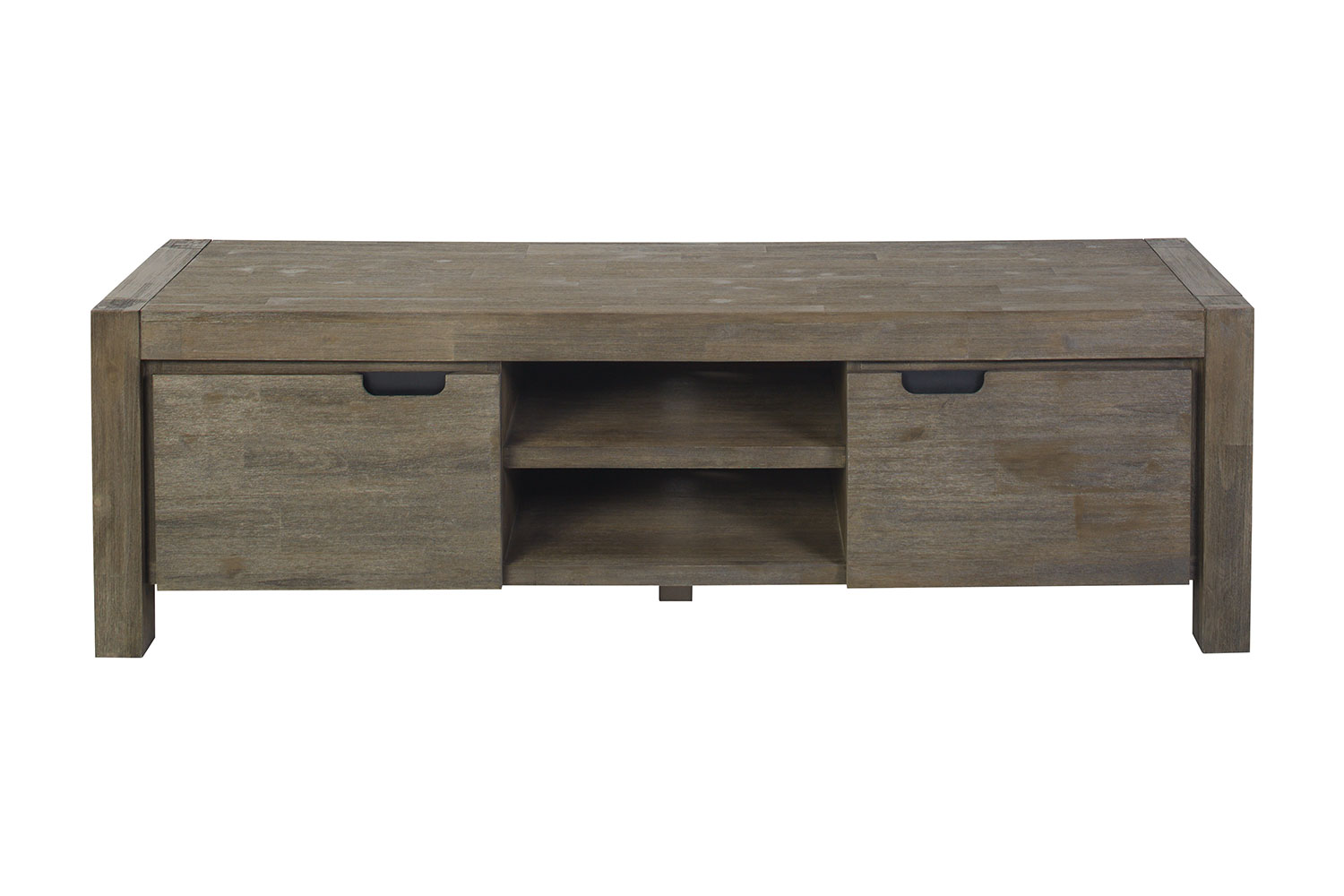 Design your home with the stunning natural tones of the Kuta Entertainment Unit. The table features two doors and two shelves, and a beautiful tabletop, perfect for your electronic appliances, home decor and staying organised. Crafted with Acacia and a touch of rustic, this statement piece will brighten up your home.