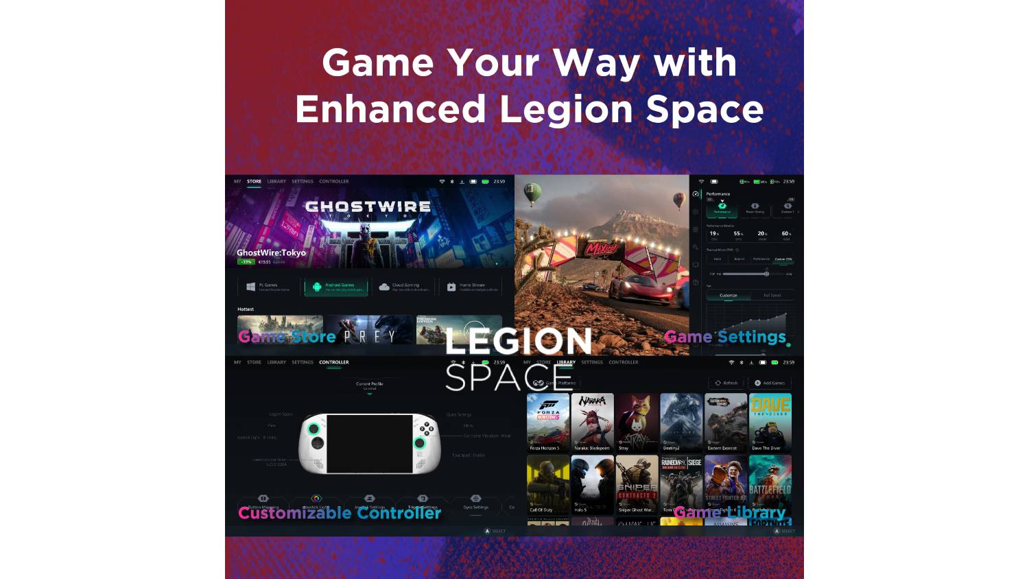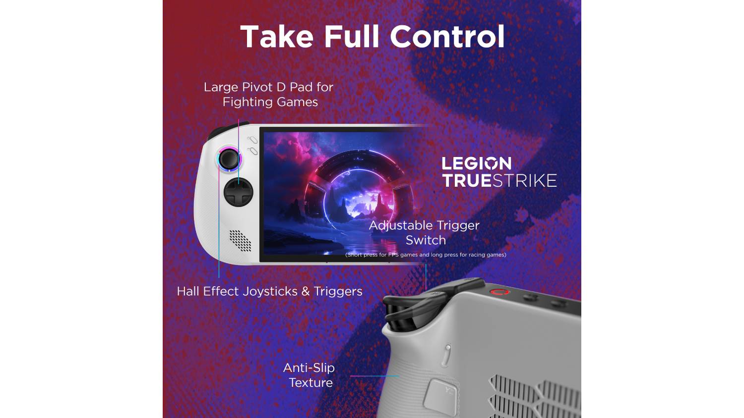 Experience a new era of handheld gaming power. The Lenovo Legion Go S is engineered to handle your favourite AAA titles with ease, bringing your entire gaming world to the palm of your hand. It also incorporates an AMD Ryzen™ Z1 Extreme processor, vibrant 8.8” Lenovo PureSight gaming display, and detachable Legion TrueStrike Controllers, providing a more flexible way of enjoying your gameplay. To top it off, this unit lets you play in handheld mode, connect to a TV for a big-screen experience, or use the controllers separately for a unique tabletop gaming setup.