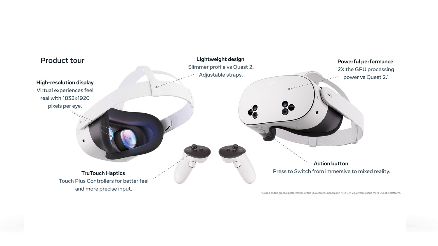 **Based on the graphic performance of the Qualcomm Snapdragon XR2 Gen 2 platform vs the Meta Quest 2 platform.