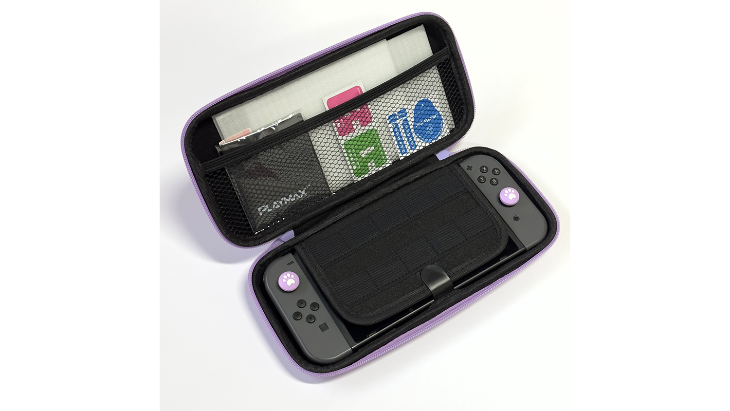 A must-have accessory for gamers on the go, the Playmax Case Combo with Screen Protector offers comprehensive protection for your Nintendo Switch. This case highlights a durable construction, sectioned compartments, a built-in carry handle, and two thumb grips for enhanced comfort, control, and protection. Plus, it also includes two screen protectors so that you can keep your console’s screen safe from scratches and smudges.