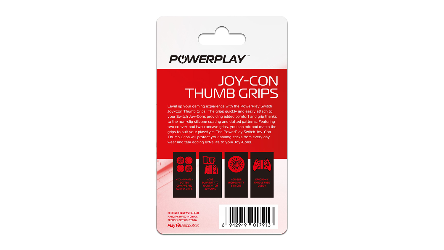 Elevate your gaming experience thanks to the PowerPlay Joy-Con Thumb Grips for Nintendo Switch. Crafted from a non-slip silicone, these thumb grips help you steadily hold your analog sticks and be in control while in the game. It also delivers added durability and keeps your Joy-Cons protected from specks of dust.
