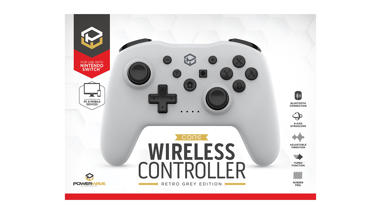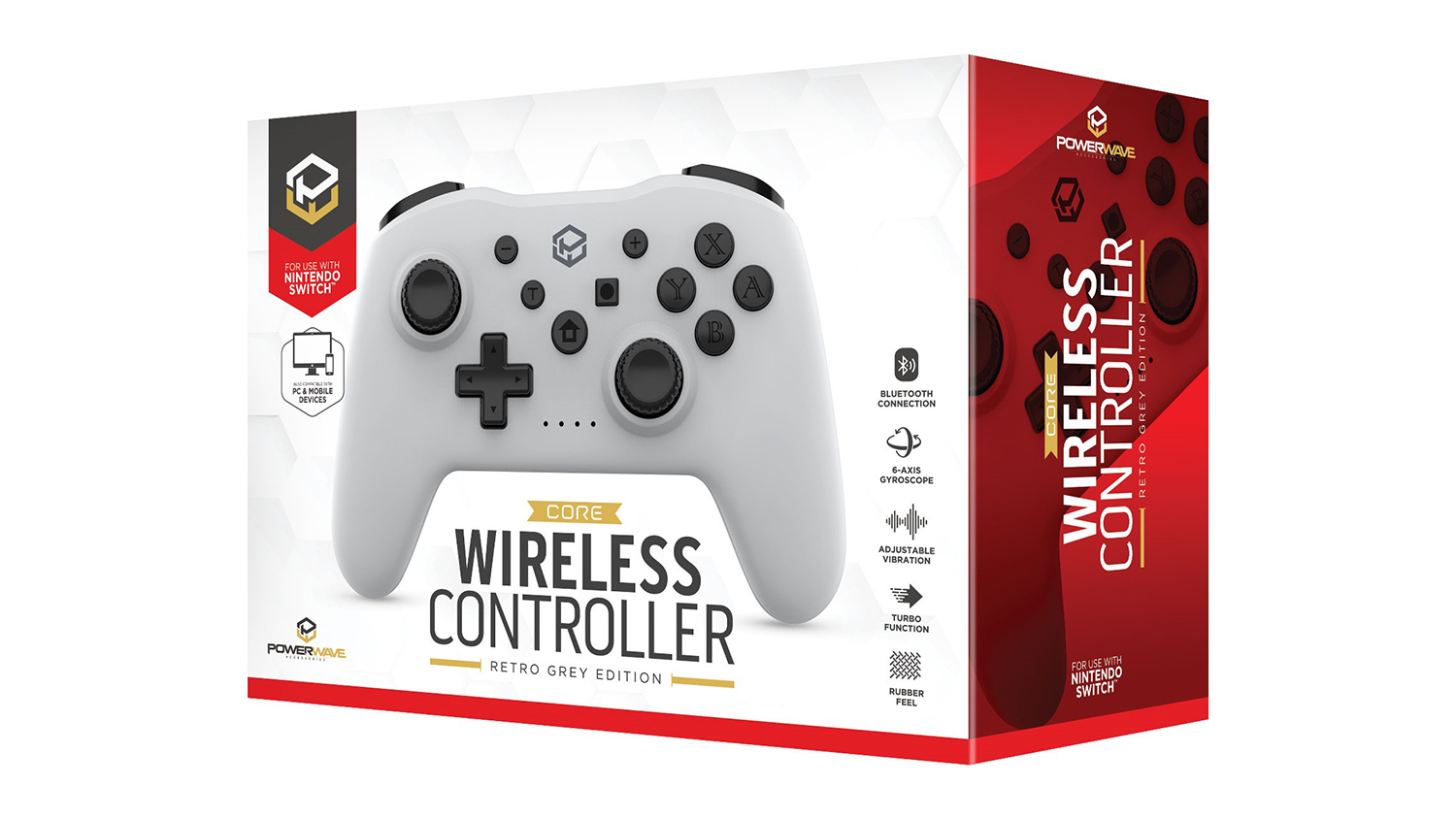 Unleash your full gaming potential with the Powerwave Core Wireless Controller for Nintendo Switch! A perfect choice for dedicated gamers, this nifty accessory features a 6-axis gyroscope, adjustable dual-motor vibration, and turbo functionality to deliver precise controls you can count on. It also boasts an ergonomic design, so you can play in optimum comfort. Plus, it works with other platforms like PC, Android, and PS3.