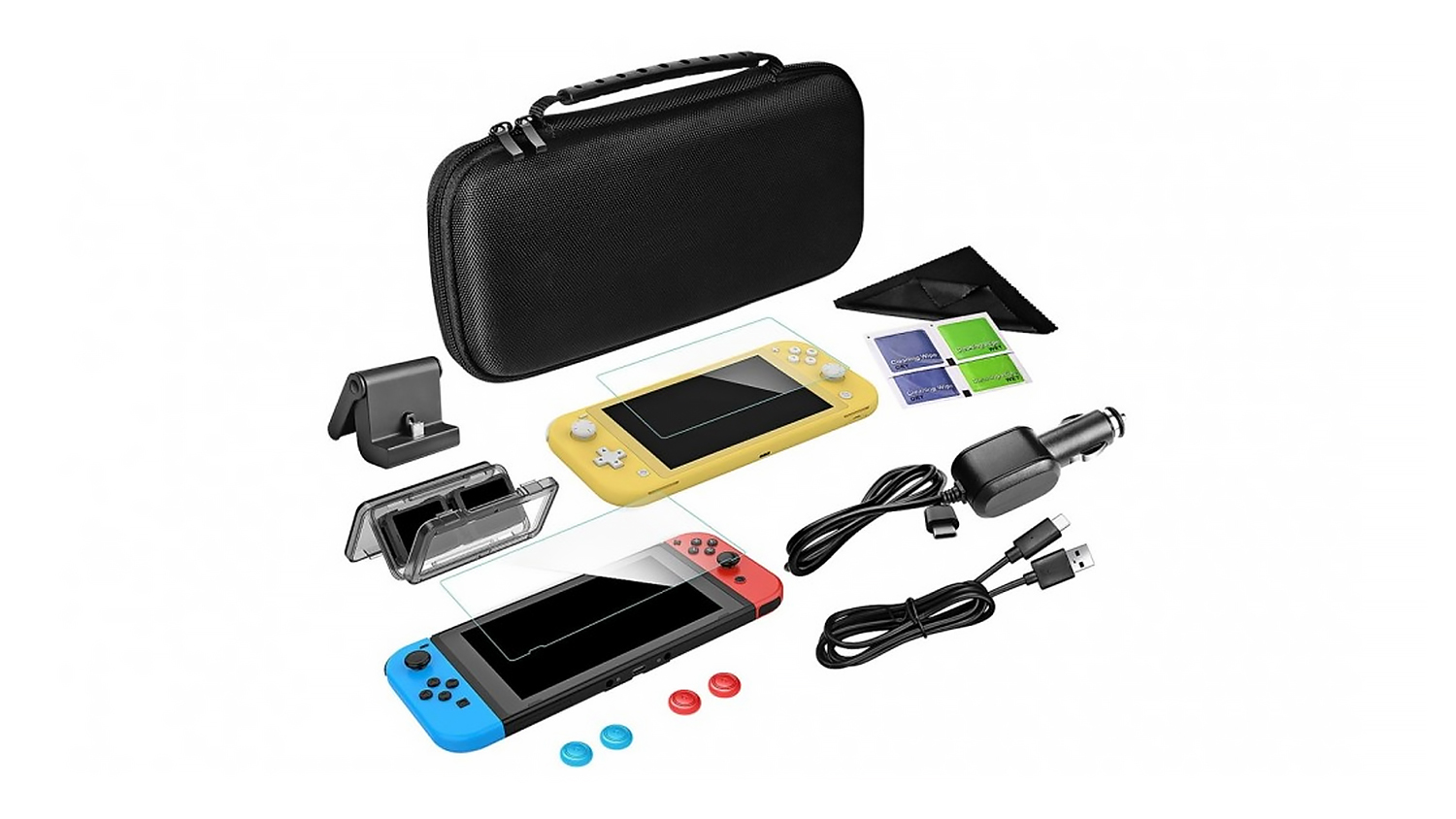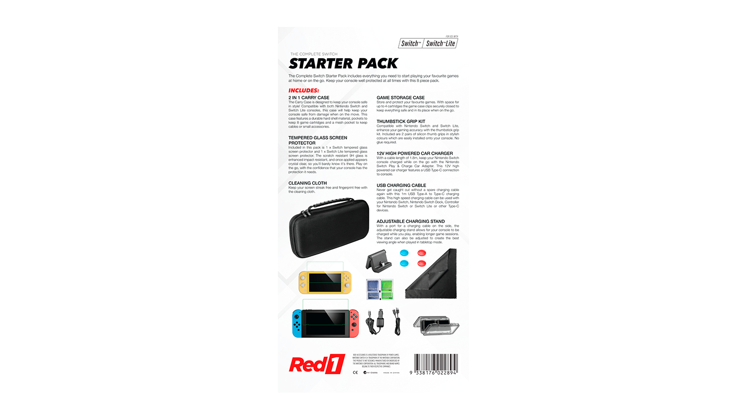 Keep your Nintendo Switch safe and always ready for the day with the Red1 Nintendo Switch Complete Starter Pack. With a hard carry case, tempered glass screen protector, silicone thumb grips, and USB-C charging cables, this starter pack makes an excellent accessory to keep your console protected while on the move.