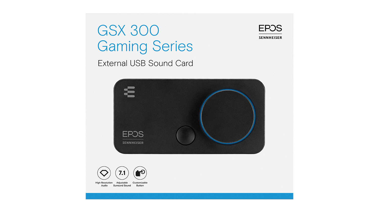 Elevate your gaming experience with EPOS Sennheiser GSX 300 External USB Sound Card. A smart investment for the dedicated gamer, this external sound card helps optimise your audio while eliminating the complicated installation process. It works in tandem with the EPOS Gaming Suite, letting you access a wide range of useful features, including full equaliser, noise control, microphone tuning, surround sound settings, and more.