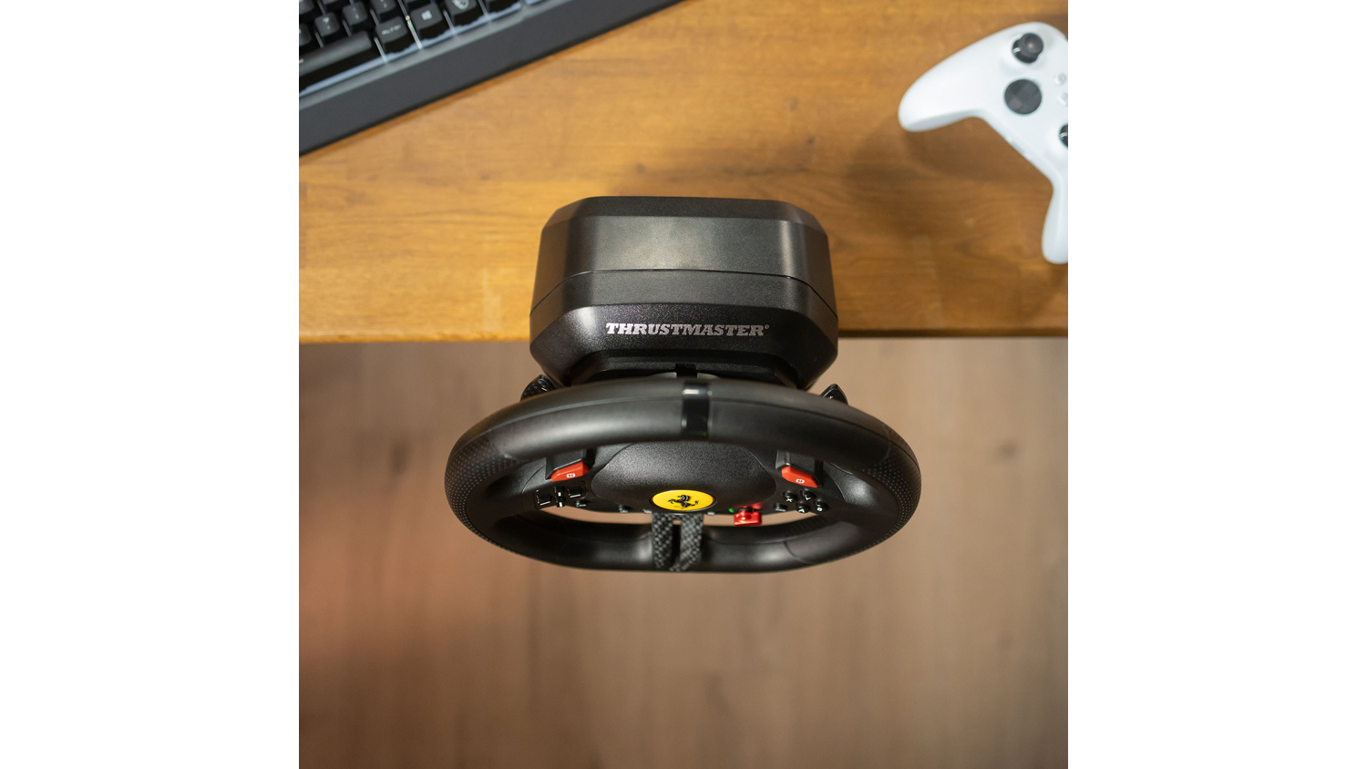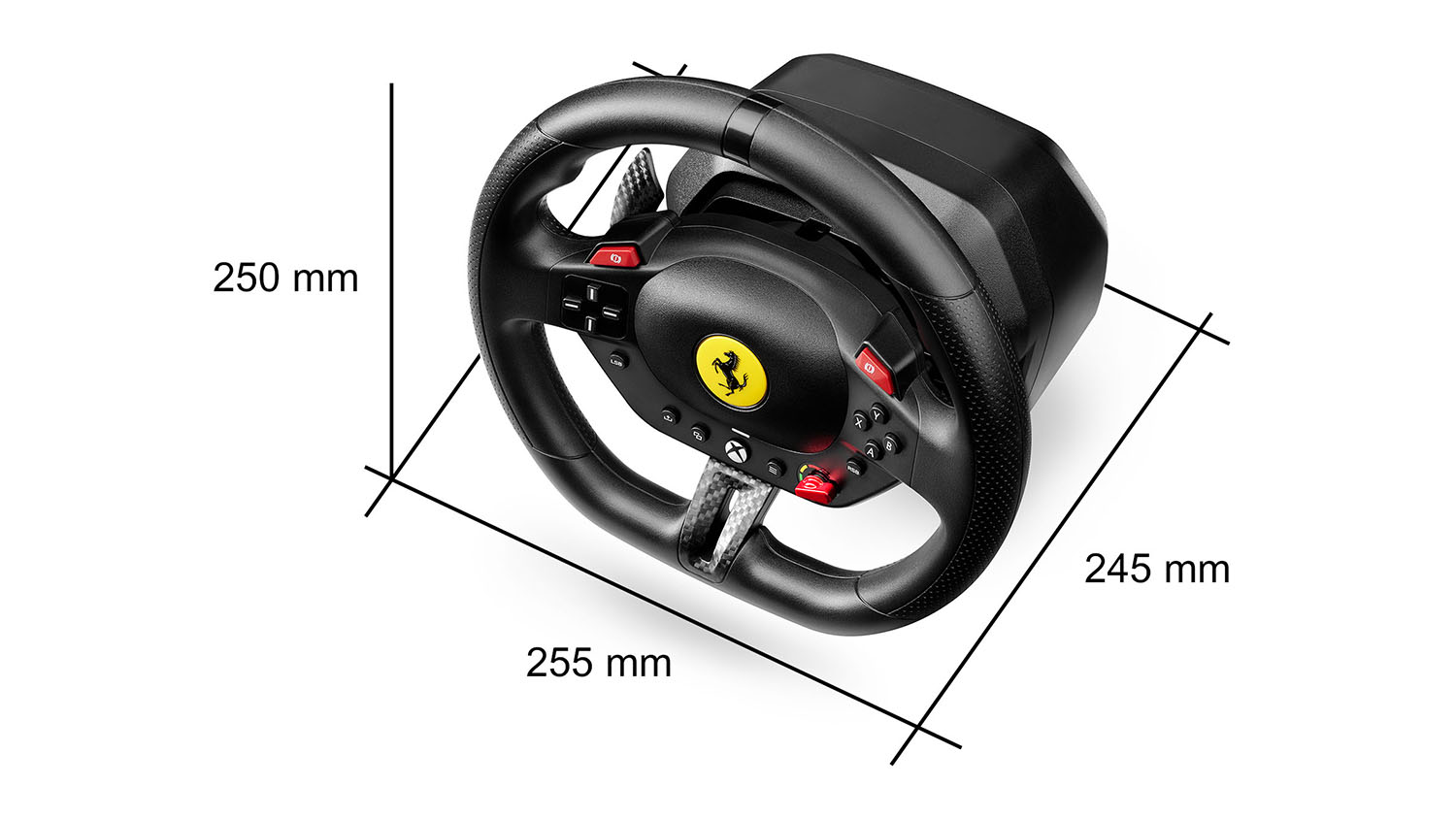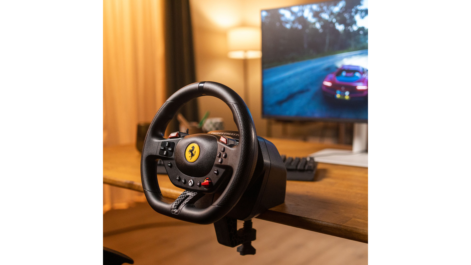 Experience the thrill of the track with the Thrustmaster T98 Ferrari 296 GTB Racing Wheel and Pedal Set for Xbox. Ready to supercharge your rides, this set features a Ferrari-inspired steering wheel with recentering technology, 240° of rotation, and 3 driving profiles. It also includes a two-pedal set that incorporates a progressive resistance brake for consistent stopping power. Plus, this unit integrates a reliable clamping system that lets you mount it on desks and tables.
