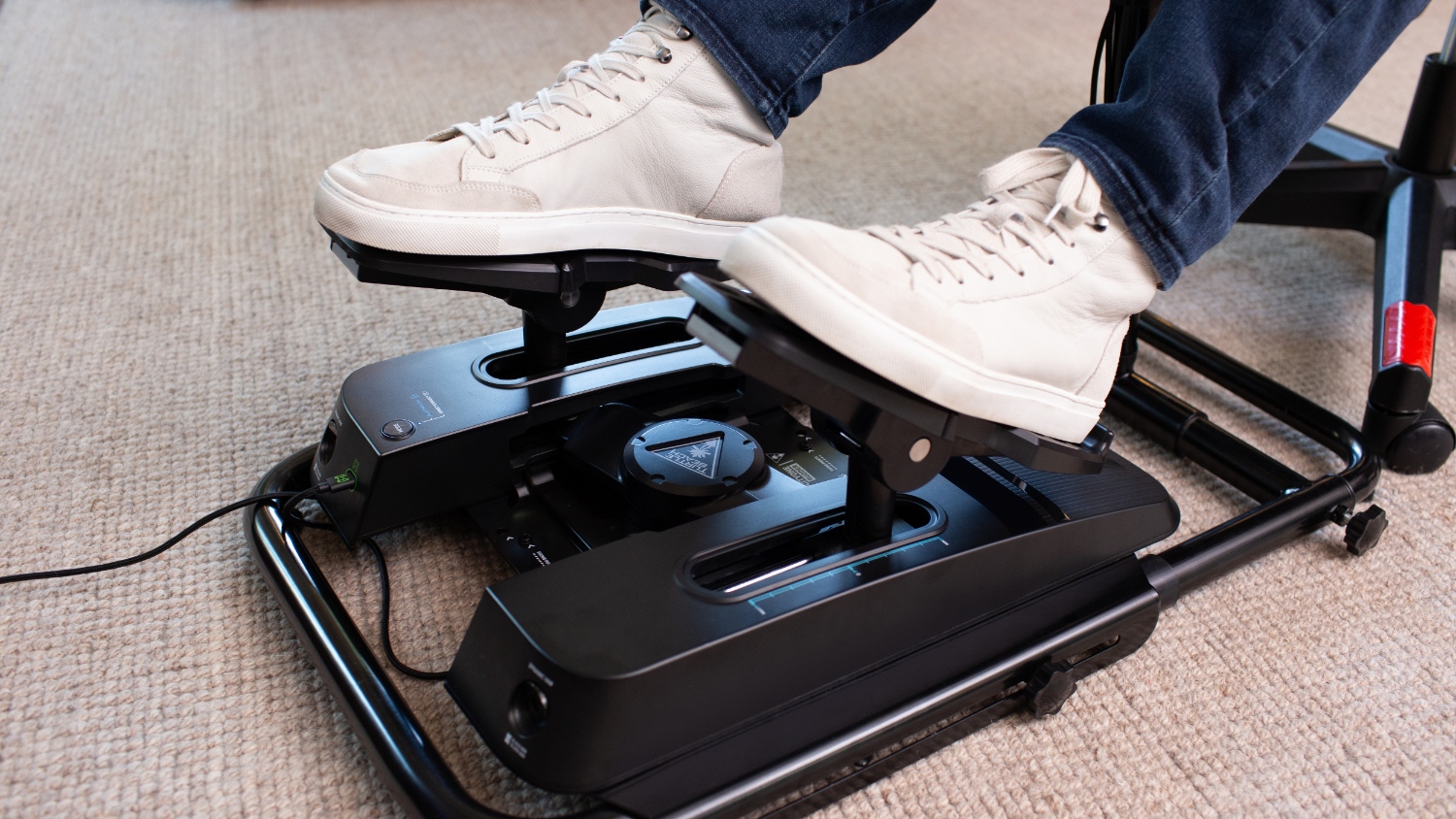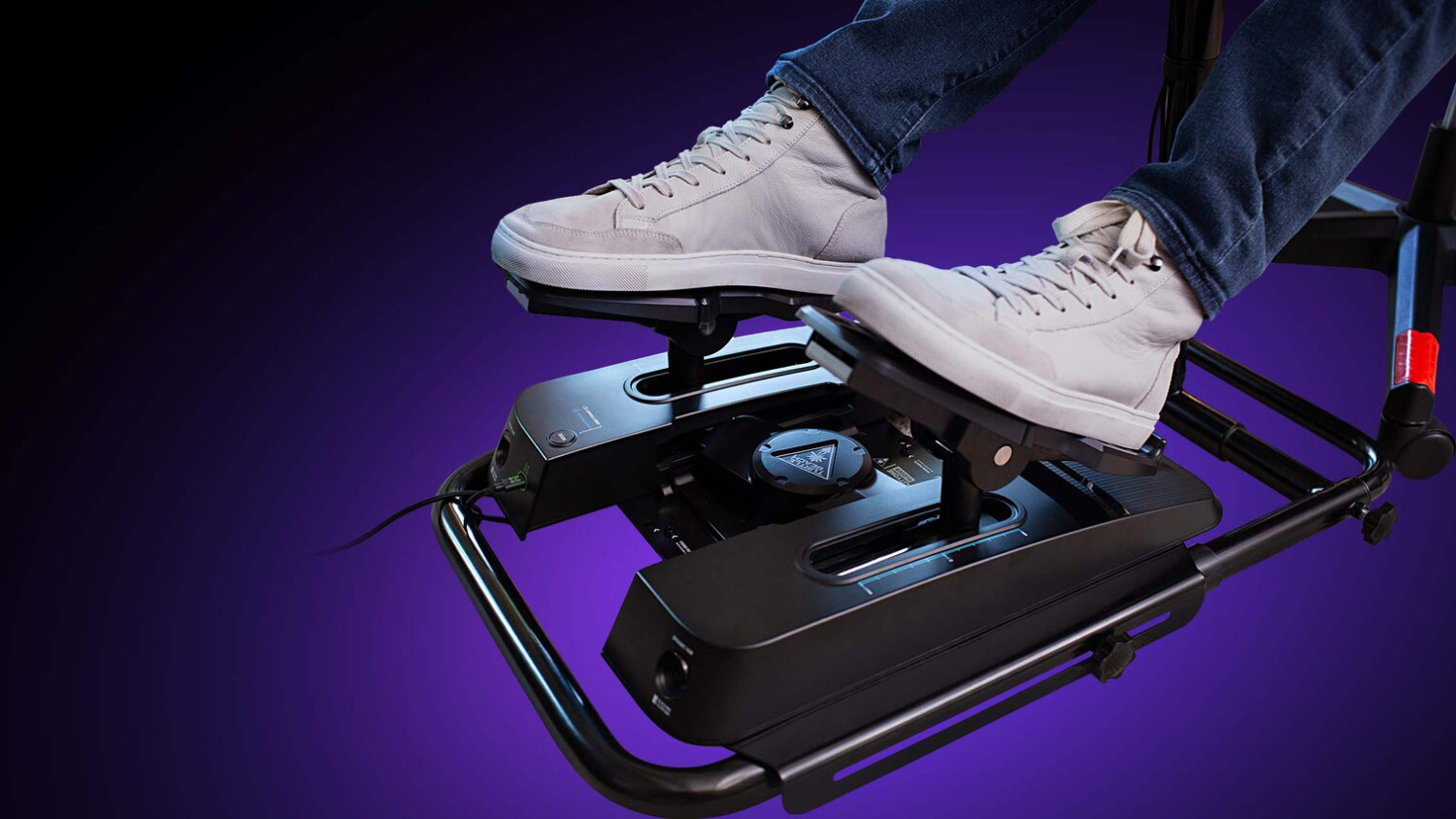 Make your flight simulations more realistic with the Turtle Beach VelocityOne Rudder! This cockpit pedal simulator features an intuitive system that delivers smooth, responsive turning manoeuvres, replicating the feel of real aircraft rudders. Its pedals have an adjustable width and swappable design for maximum comfort and customisation. Plus, it offers ultimate stability with its sturdy metal construction, rubber pads, and carpet spikes, ensuring a stable base on various surfaces. Enjoy a fully customisable setup that adapts to your unique flying style with this VelocityOne Rudder.