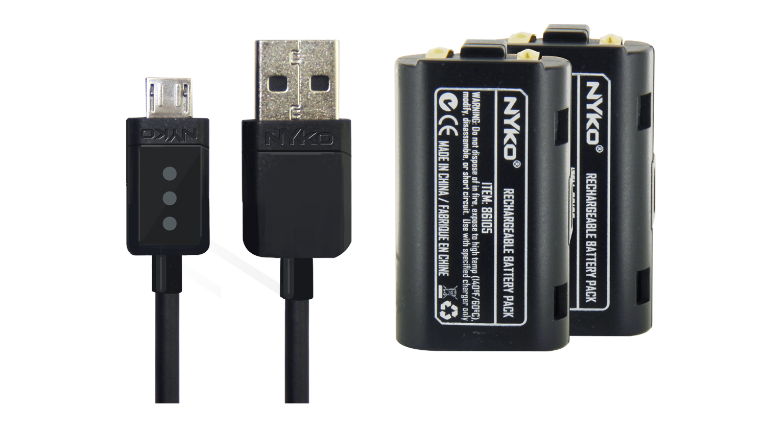 The Nyko Power Kit Plus lets you play and recharge the batteries of you Xbox One™ wireless controller at the same time. It includes two high-quality NiMH rechargeable battery that can provide up to 25 hours of play per charge. With its extra-long charging cable, you can plug it in an outlet from across the room and not worry about it disconnecting.