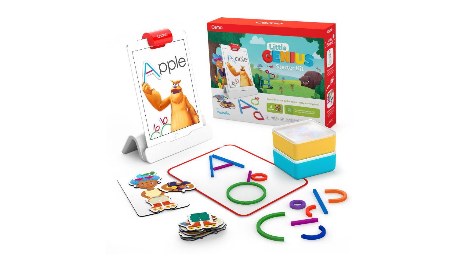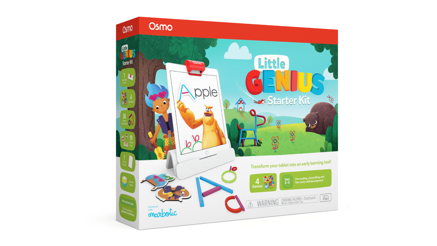 Incorporate fun to your child’s early learning with this Osmo Little Genius Starter Kit + for iPad. Equipped with four interactive games, this kit helps your children foster their creativity, critical thinking, and cognitive skills. It also includes an Osmo Base, allowing your kid to hands-free use the iPad while playing.