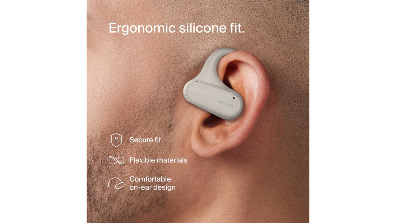 Belkin SoundForm ClearFit True Wireless Open-Ear Headphones - Sand (AUC013BTSA)