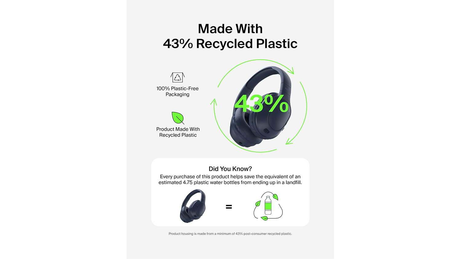 *Actual recycled plastic percentage of each component varies. The total aggregate recycled plastic content is 42.9% (excluding cables).