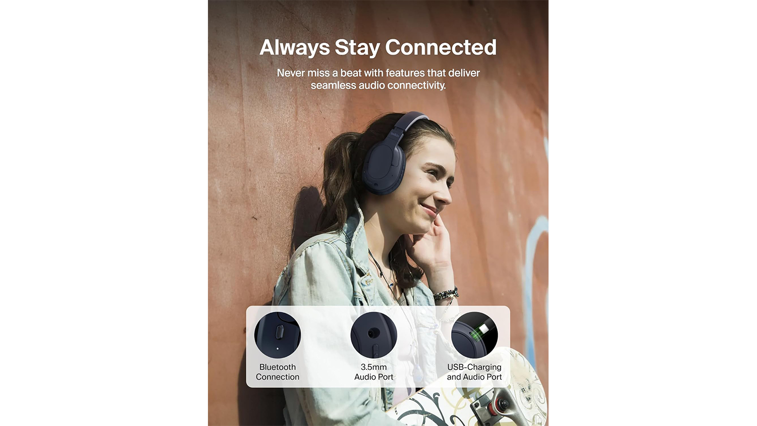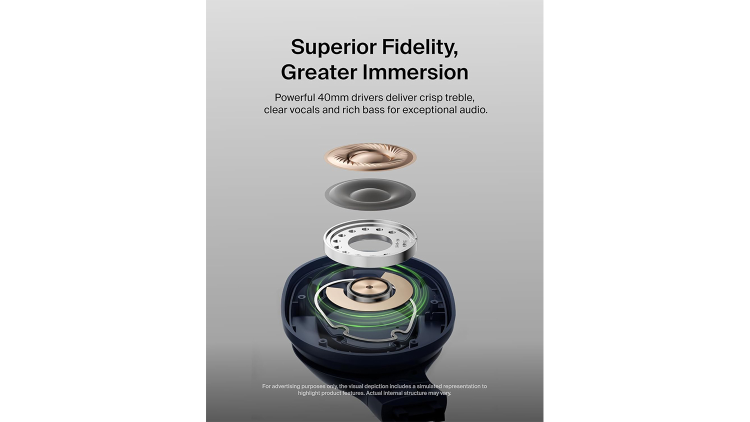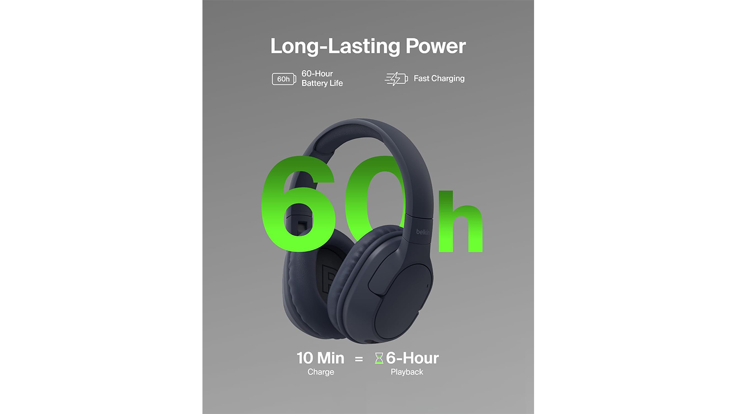 Bask in the balanced, faithful audio offered by the Belkin SoundForm Surround Wireless Over-Ear Headphones. A great choice for audiophiles on the move, this pair of headphones boasts a reliable and portable design that provides up to 60 hours of listening time on every charge. It also highlights Clear Call Quality technology, so you can readily engage in virtual meetings whenever you need.