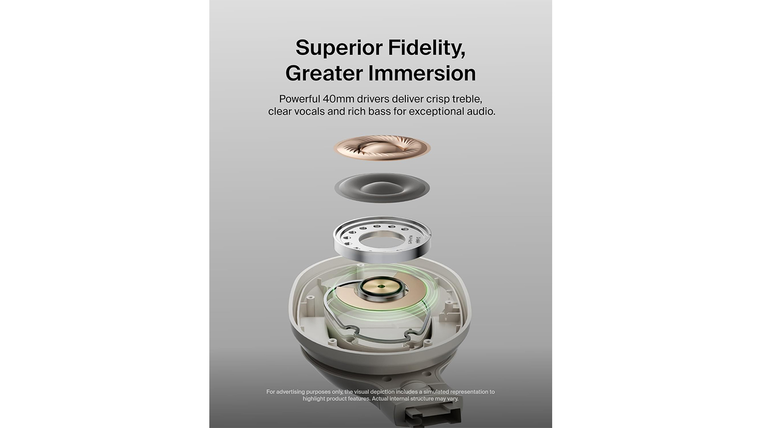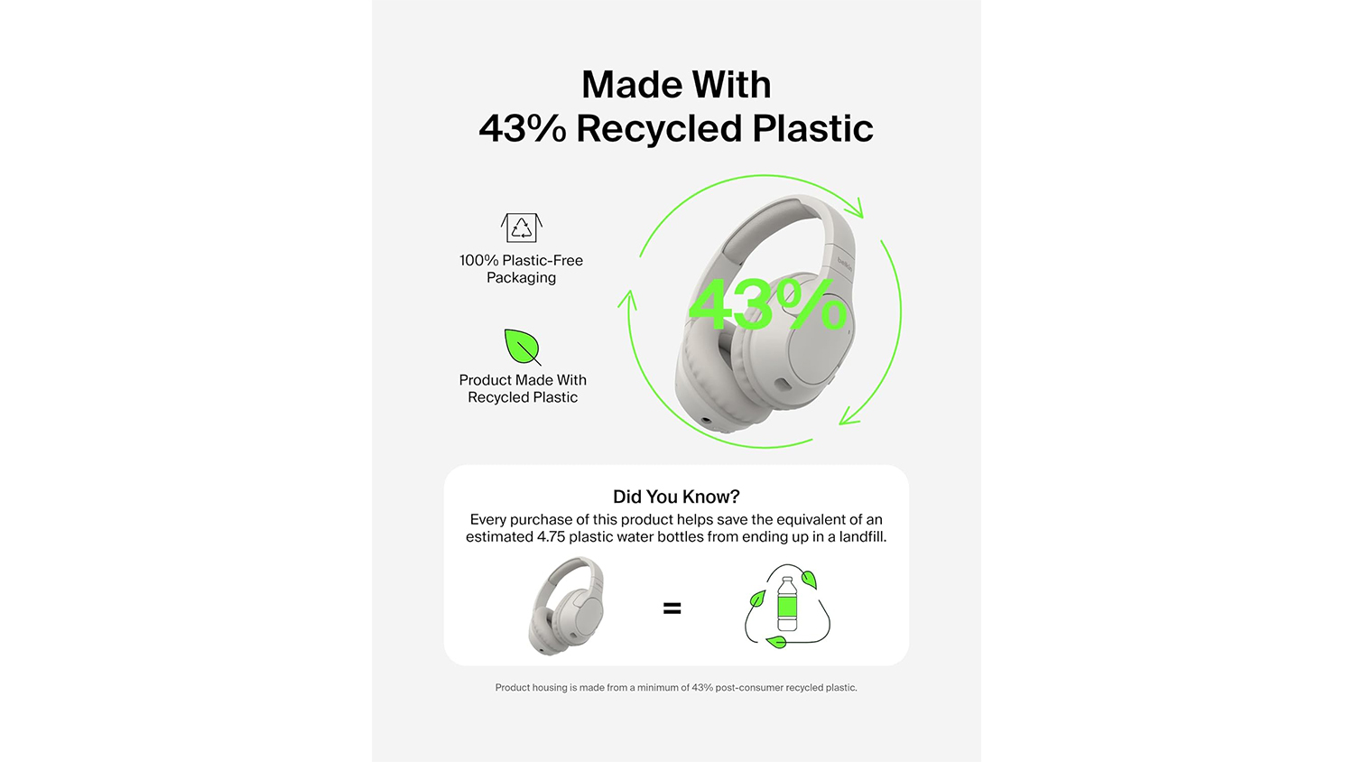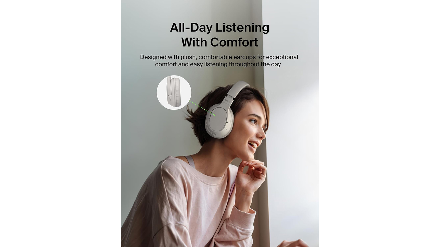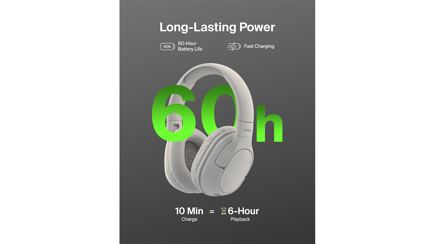 Bask in the balanced, faithful audio offered by the Belkin SoundForm Surround Wireless Over-Ear Headphones. A great choice for audiophiles on the move, this pair of headphones boasts a reliable and portable design that provides up to 60 hours of listening time on every charge. It also highlights Clear Call Quality technology, so you can readily engage in virtual meetings whenever you need.