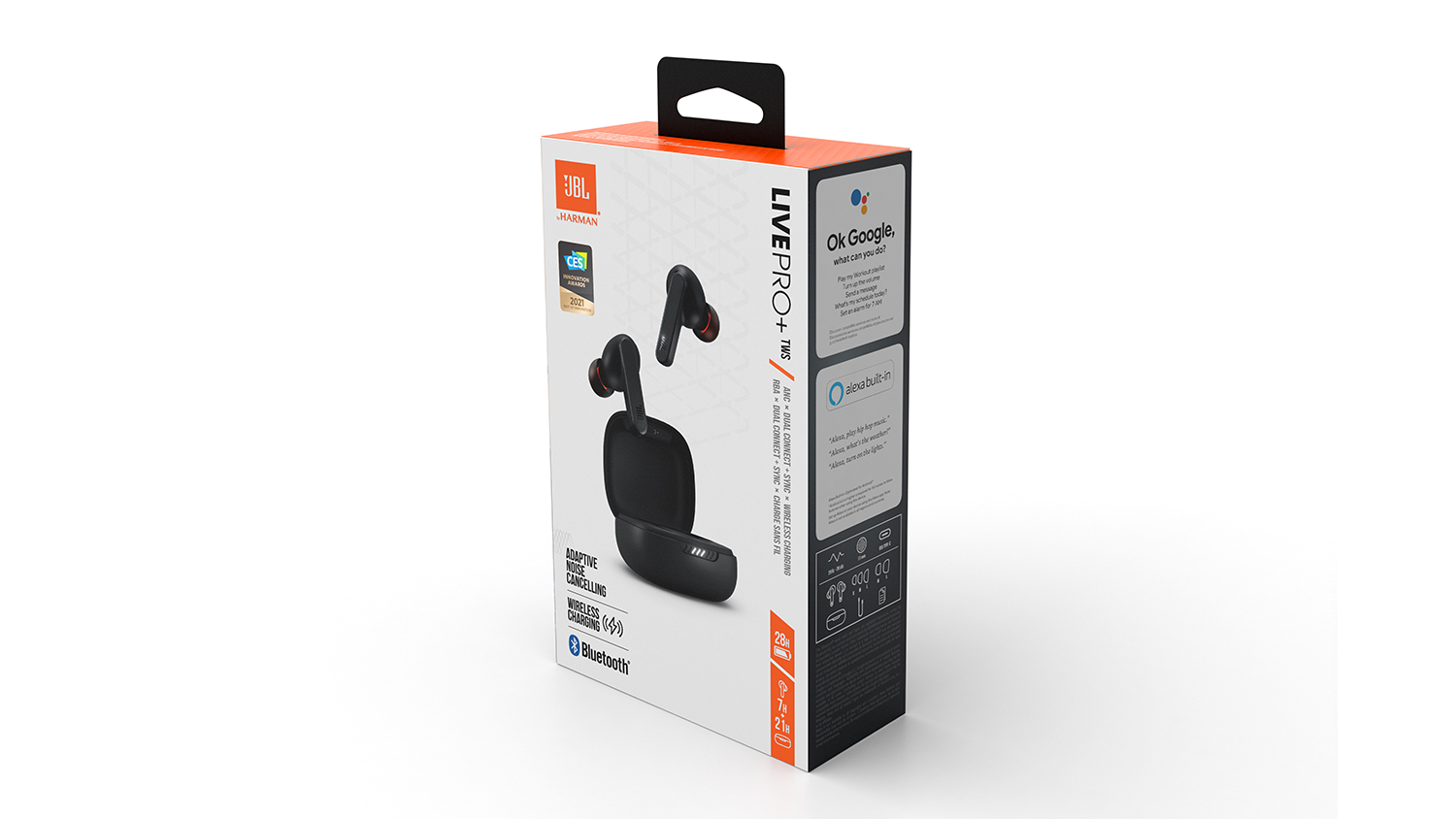 Enjoy dynamic sounds without distractions using the JBL Live Pro+ TWS Adaptive Noise Cancelling True Wireless In-Ear Headphones! A perfect solution for your everyday listening needs, this pair of headphones boasts powerful 11mm drivers with innovative Adaptive Noise Cancelling and Smart Ambient features. It also offers a total of 28 hours of battery life, ensuring it can accompany you throughout the day.