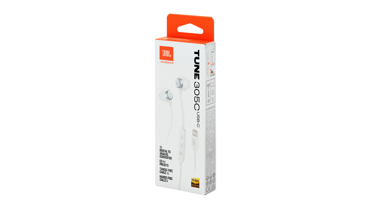 Experience powerful audio in a compact design with the JBL Tune 305C Wired In-Ear Headphones. Featuring powerful 12.5mm drivers, JBL Pure Bass Sound, and Hi-Res Audio, this lightweight headphone brings deep, punchy bass and crystal-clear sound to every track. It also highlights a tangle-free cable, a three-button remote, and USB-C connectivity, making it the perfect everyday companion for music, calls, and more.
