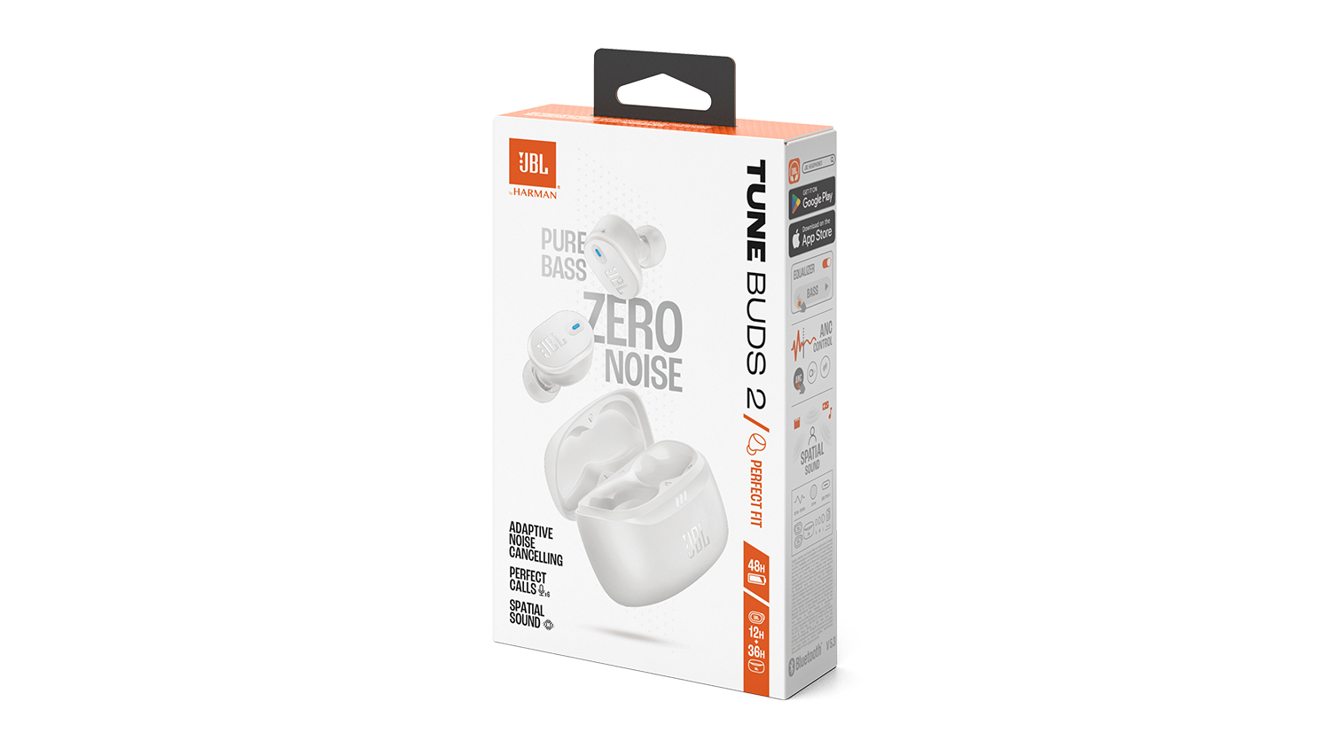 JBL Tune Buds 2 Adaptive Noise Cancelling True Wireless In-Ear Headphones - White (JBLTBUDS2WHTAS)