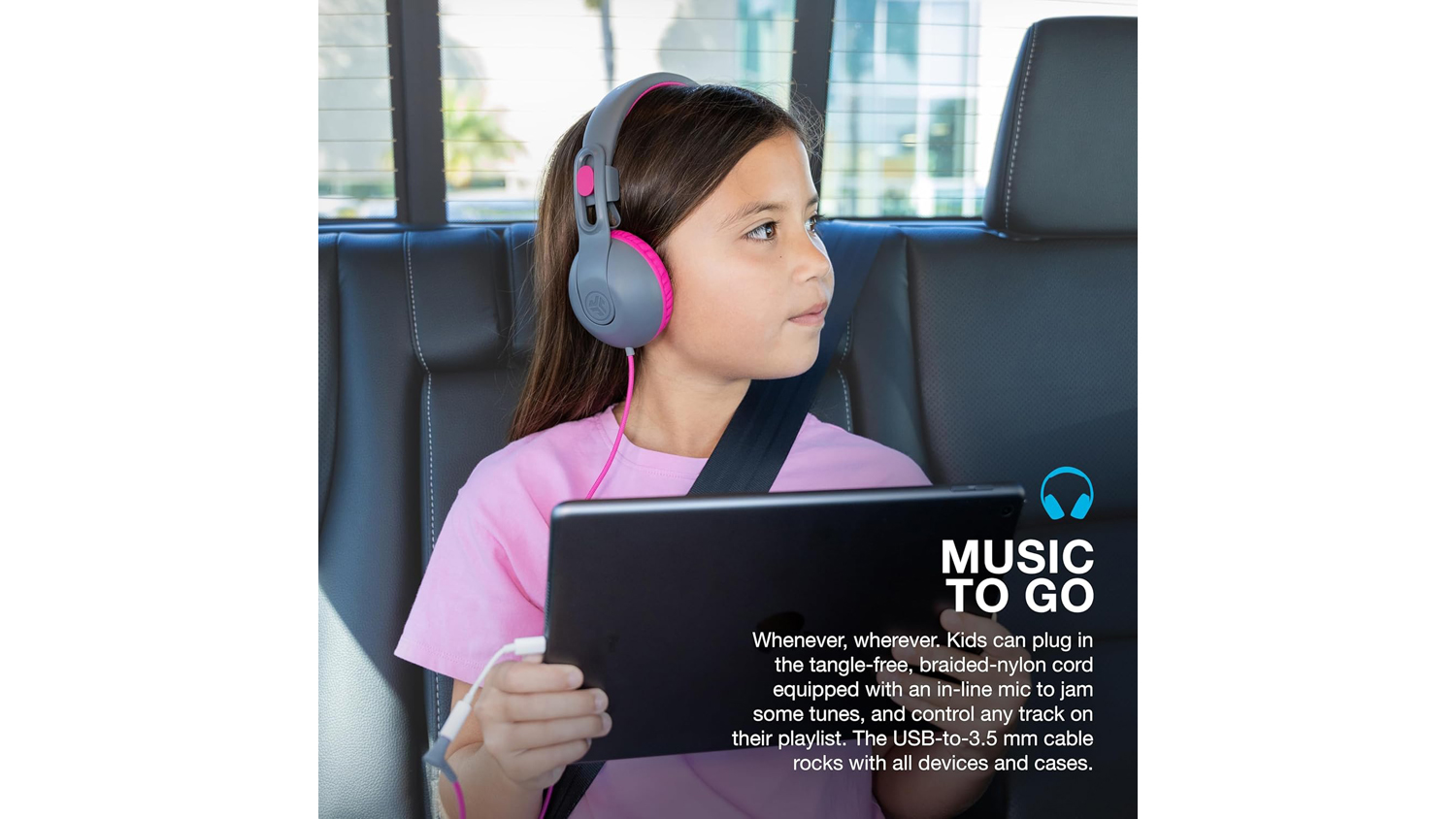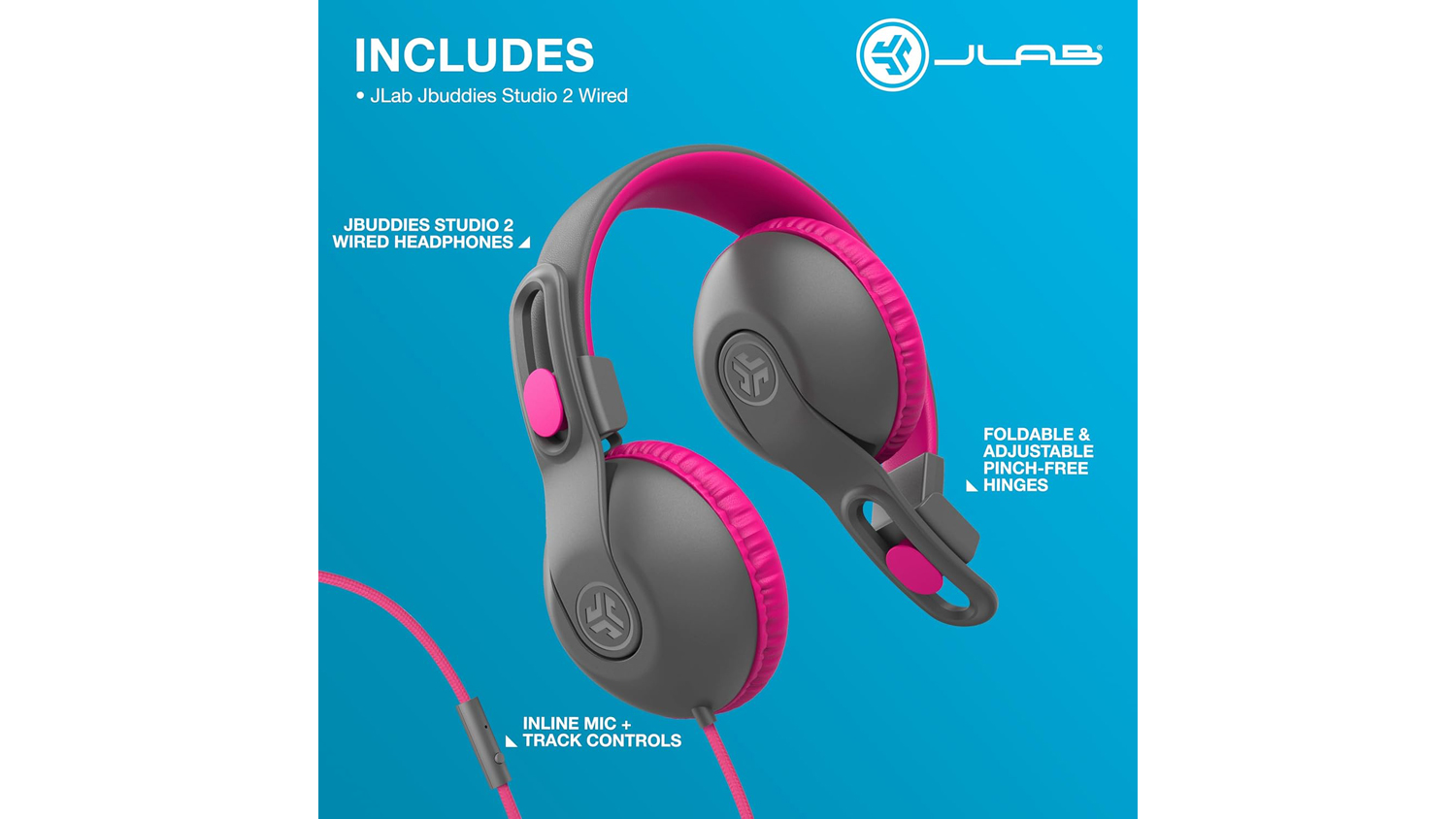 JLab JBuddies Studio 2 Wired Over-Ear Headphones - Grey/Pink (HKSTU2RGRYPNK122)
