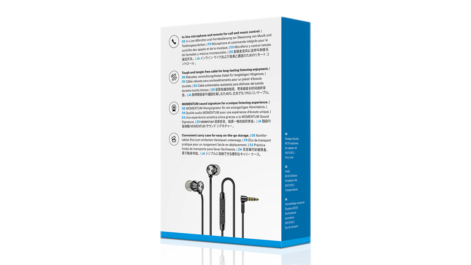 Offering clear, rich, and powerful audio, the Sennheiser MOMENTUM M2 In-Ear Headphones let you enjoy a premium listening experience. It perfectly blends high-grade materials, superior craftsmanship, and sleek design, so you can listen to music in style. The headphones also include a carrying case for easy storage and portability.