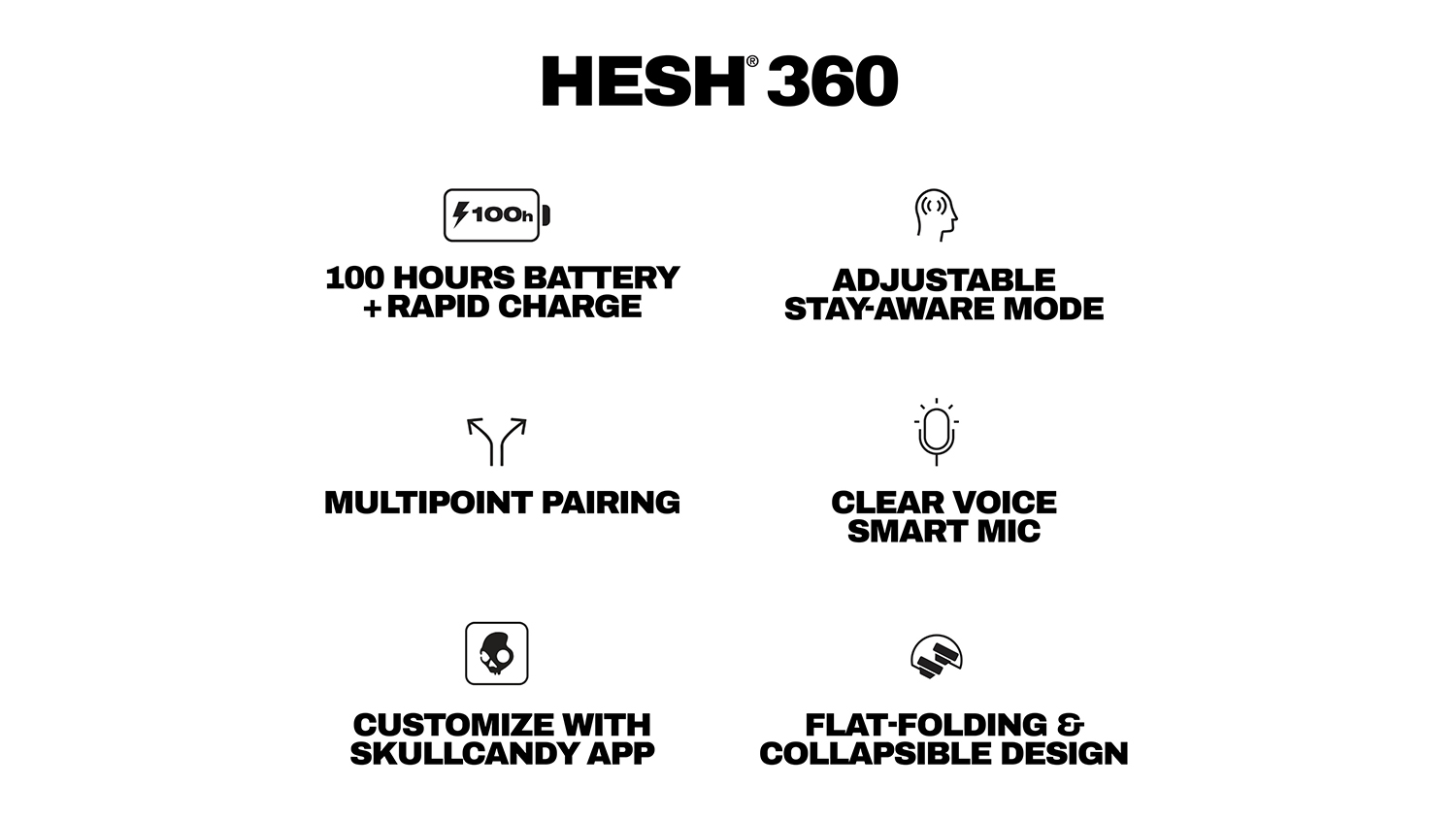 Feel every beat with the Skullcandy Hesh 360 Wireless Over-Ear Headphones, featuring 40mm drivers that deliver deep, balanced sound for all your music. With Stay-Aware Mode, you can tune into your surroundings, making it perfect for running errands or navigating crowded spaces. Plus, with a 100-hour battery and fast charging capability, these headphones are always ready when you are!