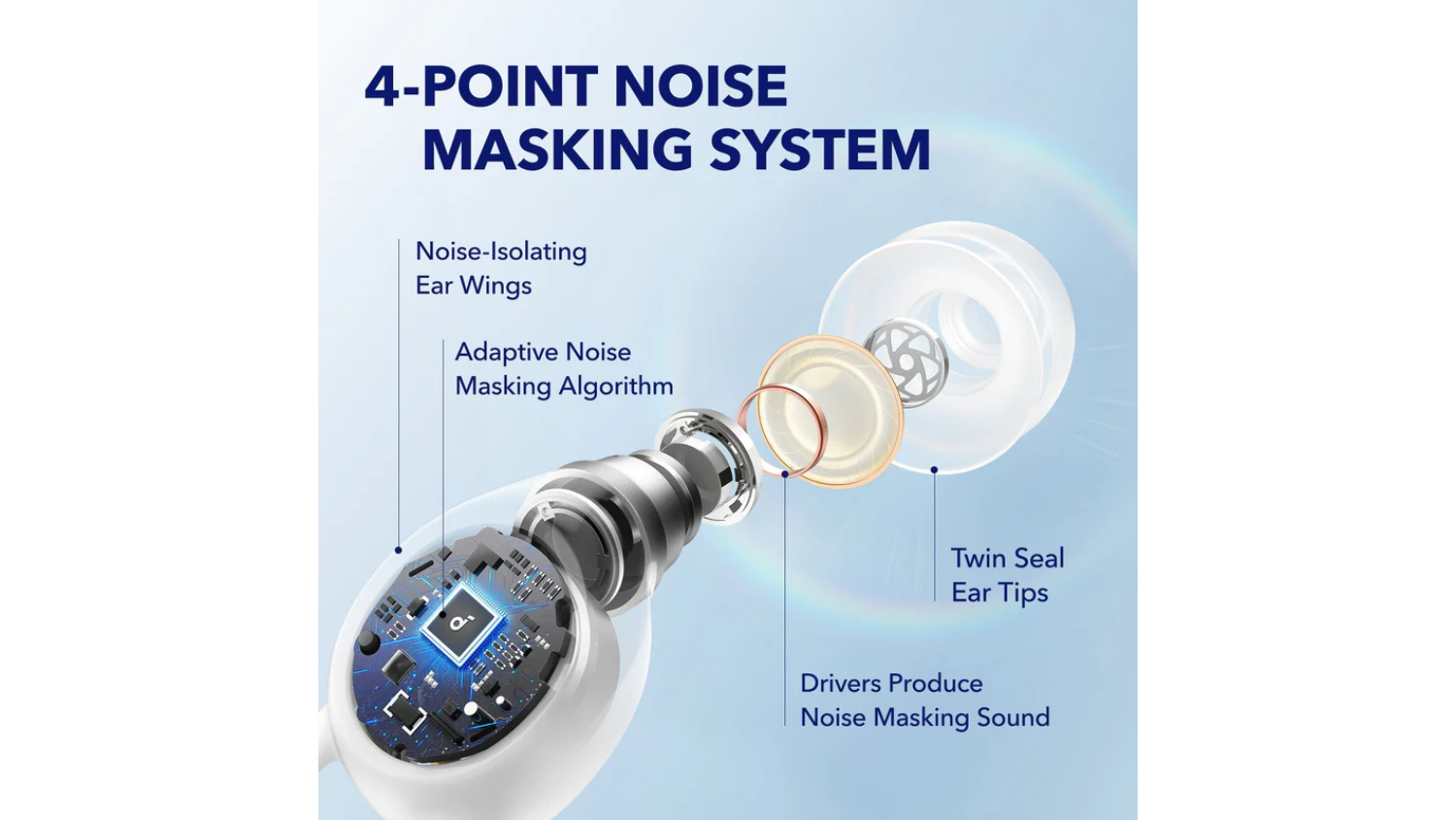 Minimise distractions and maximise your comfort during bedtime, thanks to the Soundcore Sleep A10 Passive Noise Cancelling True Wireless In-Ear Headphones! Your gateway to tranquillity, this device features a 4-Point Noise Masking System and calming sounds to help improve your sleep quality. The headphones are also built with a slim profile and a lightweight structure so it feels extra comfortable in your ears throughout the night. Use it along with the Soundcore app to monitor your sleep patterns and choose your favourite bedtime sounds. Additionally, you can enjoy wireless music streaming from compatible devices, thanks to Bluetooth v5.2 Technology.