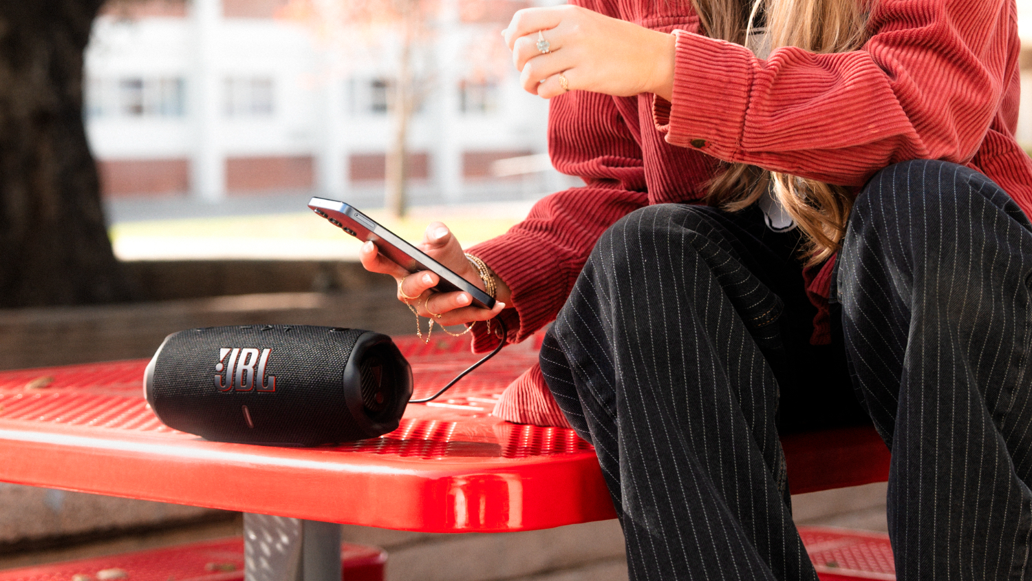 Take your music anywhere. The JBL Charge 6's portable design and long-lasting battery make it the perfect companion for outdoor adventures, pool parties, and everything in between. Featuring JBL’s AI Sound Boost, this little audio genie is ready to fill your space with rich and dynamic sounds. It also doubles as a convenient power bank, so you can power up your devices on demand. Plus, this unit is IP68 waterproof, dustproof, and drop-proof, making it a truly dependable music companion.
