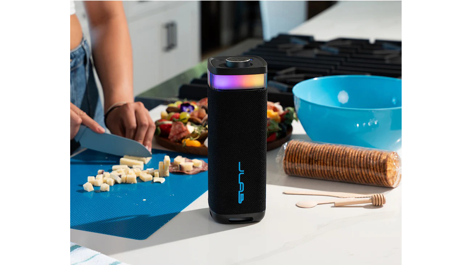 Easily create the perfect festive atmosphere anytime, anywhere with the JLab JBuds Party Portable Bluetooth Speaker. Providing 30W power, this speaker lets you bask in impressive sounds that fill rooms and outdoor spaces alike. It also flaunts a compact design and a handy loop strap, so you can bring it anywhere you go. Plus, JBuds Party offers a 12-hour battery life for longer jamming sessions.