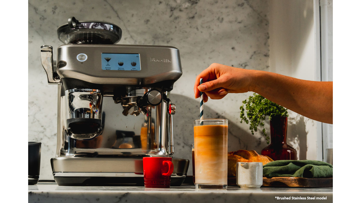 Sleek & Stylish: The Breville Barista Touch Impress™ range features a sleek design, available in Brushed Stainless Steel, Black Truffle, and Sea Salt colour options** for a stylish addition to any kitchen.