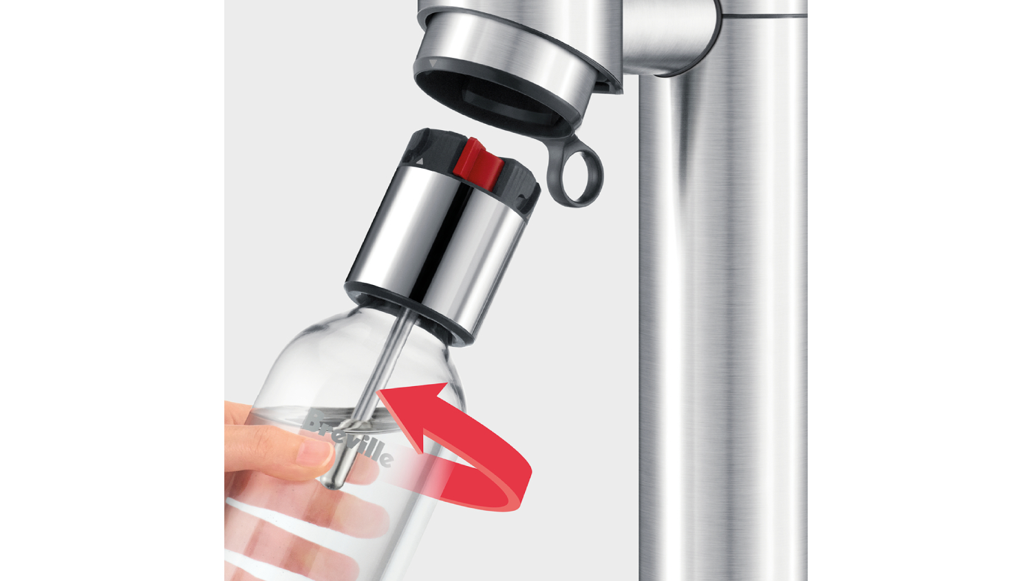Rated 3 out of 5 by from Too many steps Delicious sparkling water - but you need a lesson/university degree to work the system even just for soda water. Click this red switch to the left first; then twist the cap on, then insert into machine aligning the arrows exactly, then sparkle, then undo the bottle from machine, then twist the red button (slowly!) to release gas, then undo cap and pour. Seriously, visitors would have zero chance sparkling water. The simpler version would've suited better. And only being able to use the one cap provided to sparkle water is annoying. You need extras for extra bottles.