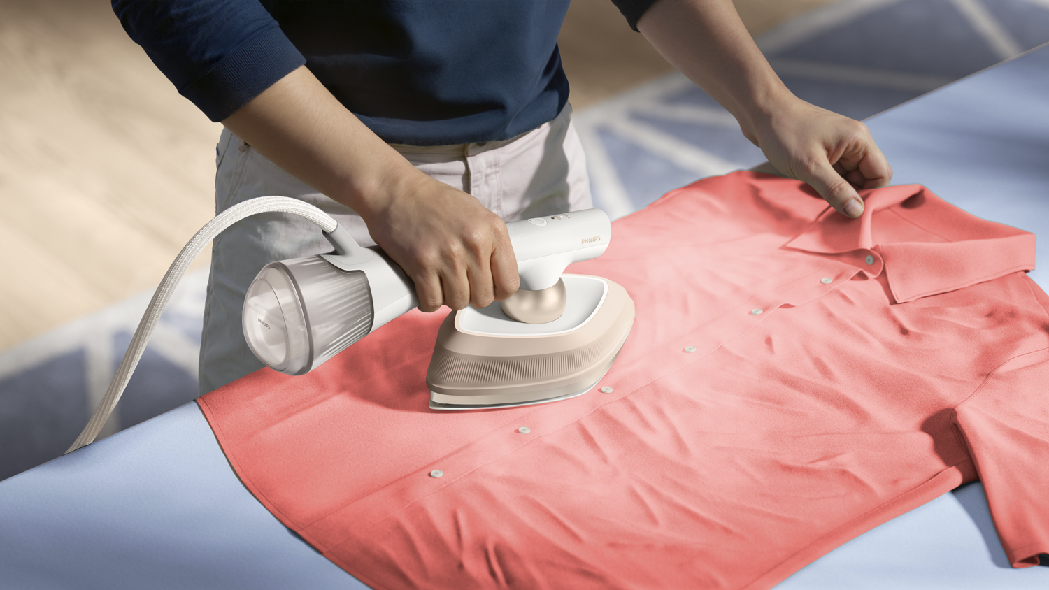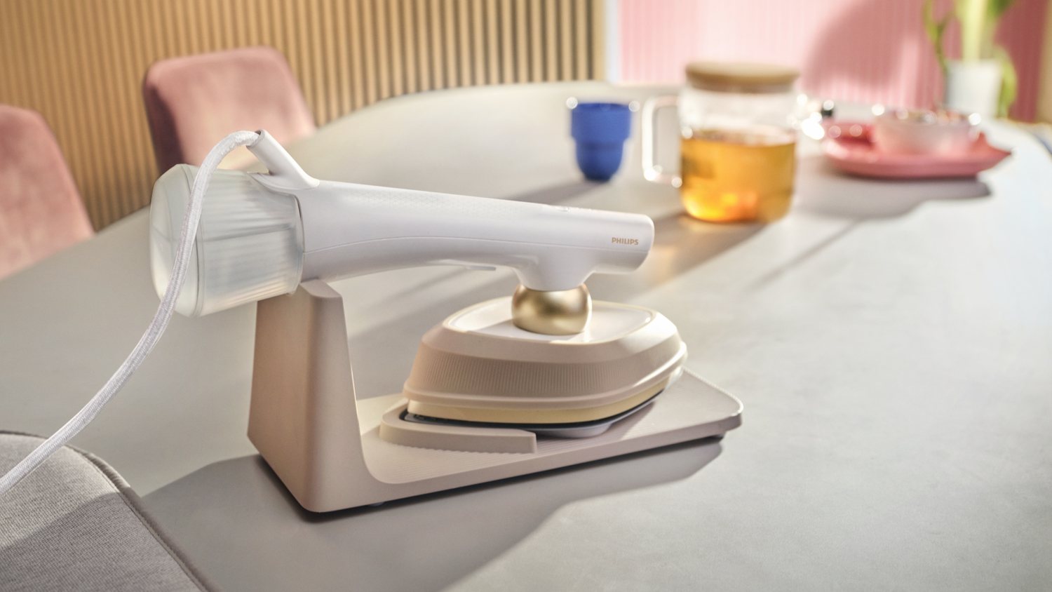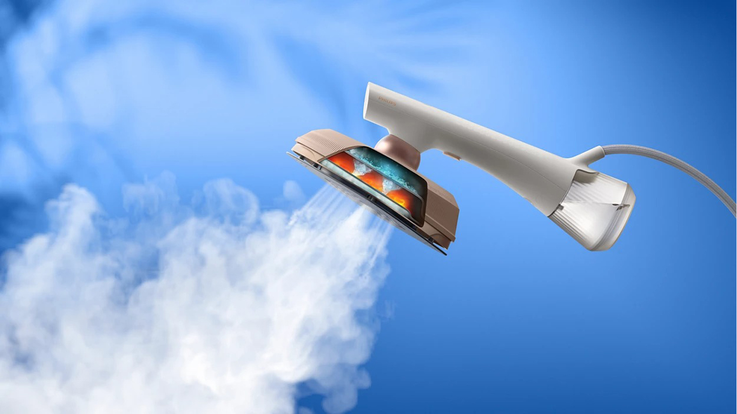Philips OneTurn Hybrid Handheld Garment Iron and Steamer - Silky White (GC213/10)
