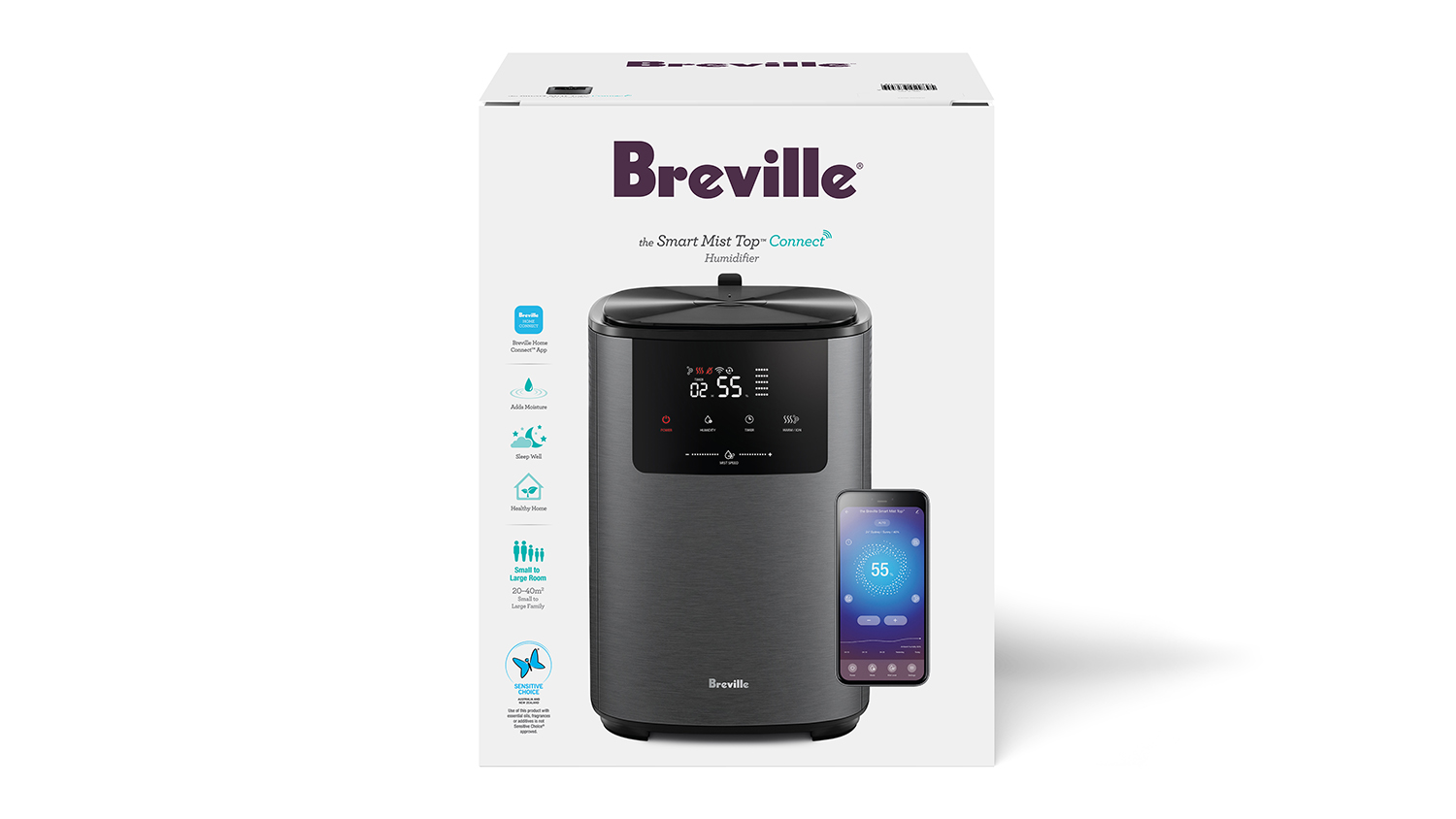 Achieve a more comfortable living environment with Breville’s the Smart Mist Top Connect 4L Humidifier. Providing relief for congestion and dry skin, this appliance regulates ideal moisture levels in rooms as large as 40m². It also equips an Ion Generator to help lessen airborne particles and a Water Atmosing Transducer that quietly releases fine mist.