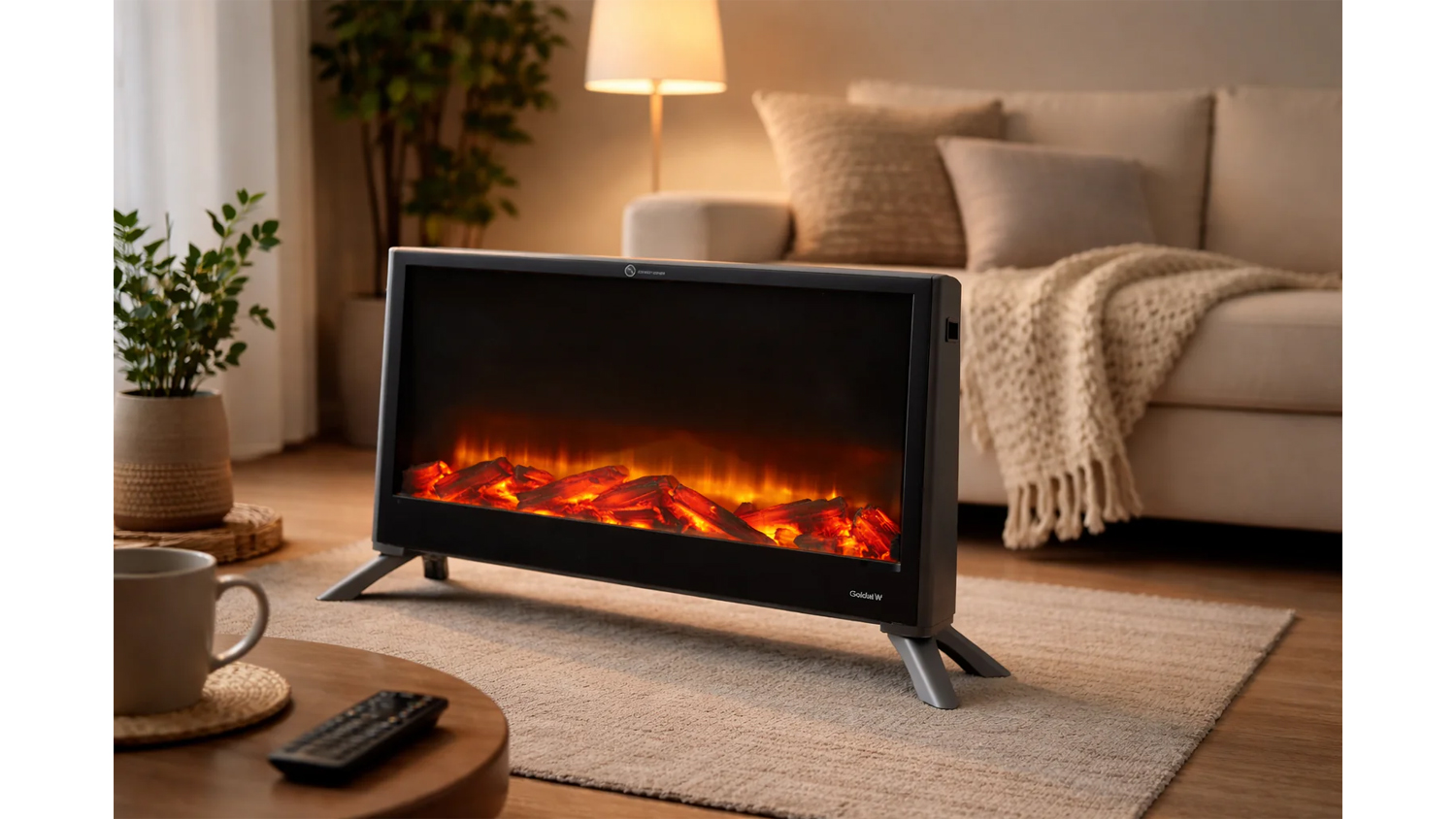 A 2000W flame effect convector heater provides efficient heating while creating a cosy fireplace-style look with its realistic flame effect. It features two heat settings, an adjustable thermostat, and a remote control for easy temperature management. The heater also includes a timer function, overheat protection for safety, and comes with a 3-year warranty for added peace of mind.