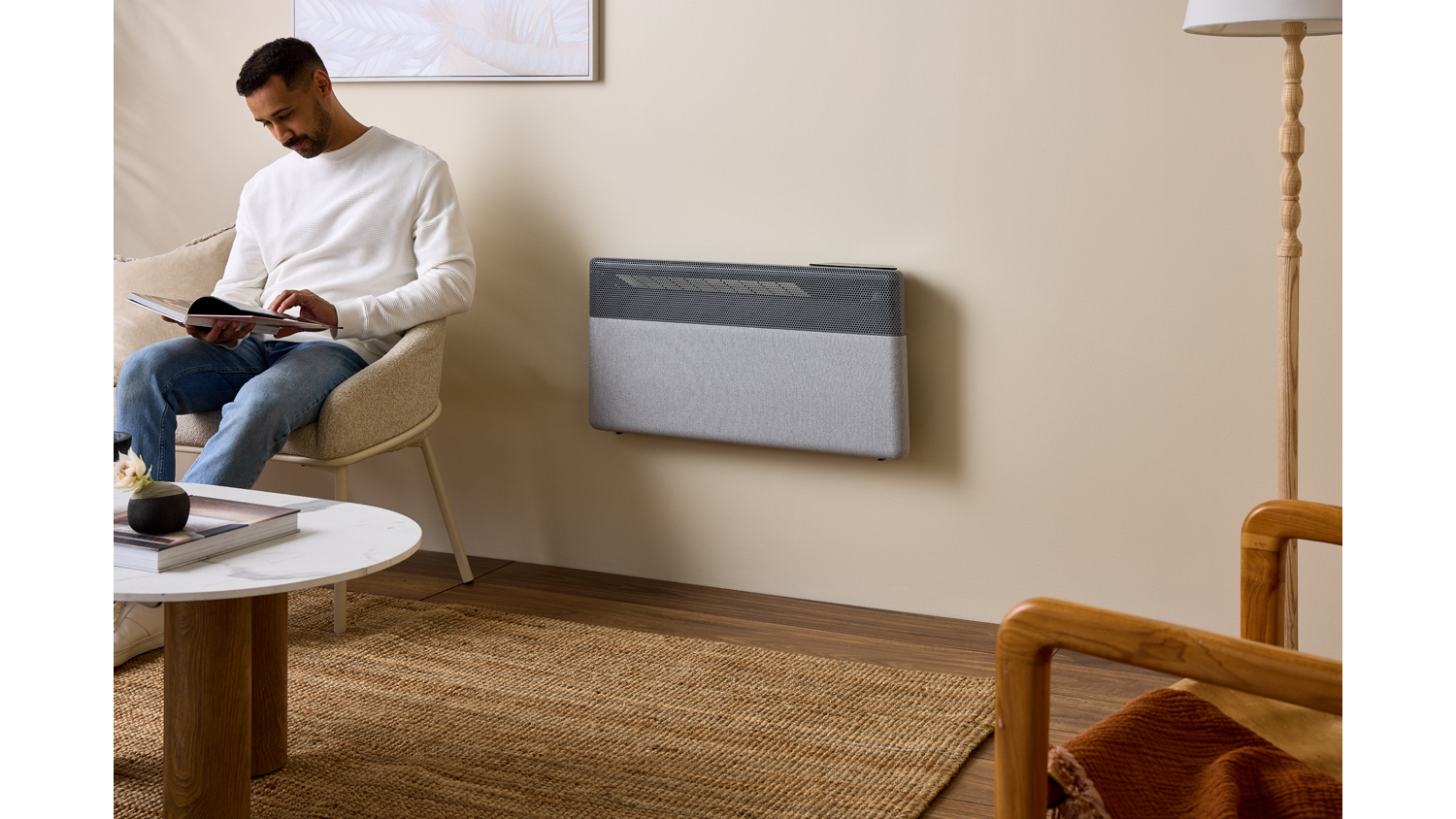 Experience next-level cosiness and customise your comfort using the Goldair 2000W Stone Fabric Panel Heater with Wi-Fi Connectivity. Delivering a gentle and enveloping warmth, this appliance boasts five heat settings. It also showcases a minimalistic freestanding profile, which can be mounted on a wall for extra convenience. Additionally, this unit includes electronic controls, making it a breeze to operate.