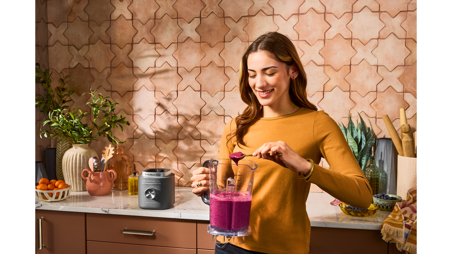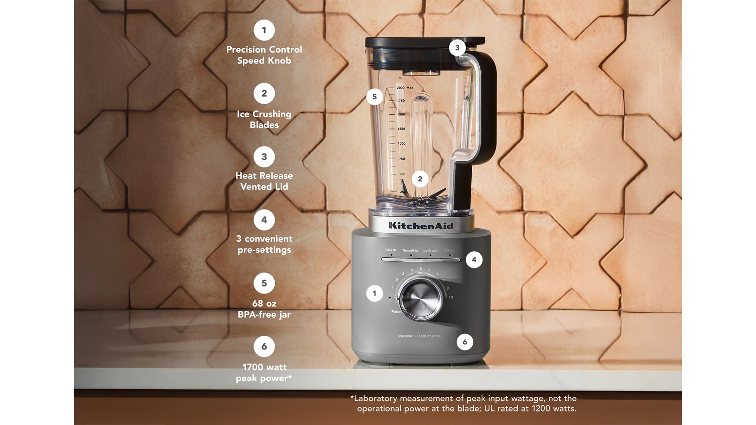 Crush, purée, and mix various ingredients with the KitchenAid 1200W K200 Pure Power Blender. A trusty companion for your daily kitchen tasks, this appliance boasts precision speed controls that help you easily achieve ideal texture for your hot or cold recipes. It also utilises powerful blades to process various tough food items. Plus, it comes with a vented lid for added ease.
