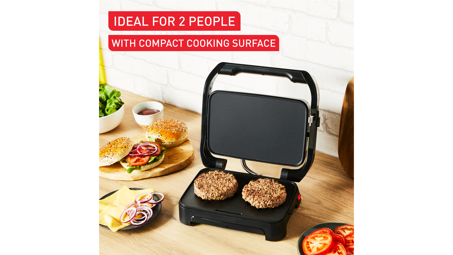 Tefal Inicio Compact 2 Slice Sandwich Press - Black/Stainless Steel (GC27A8)